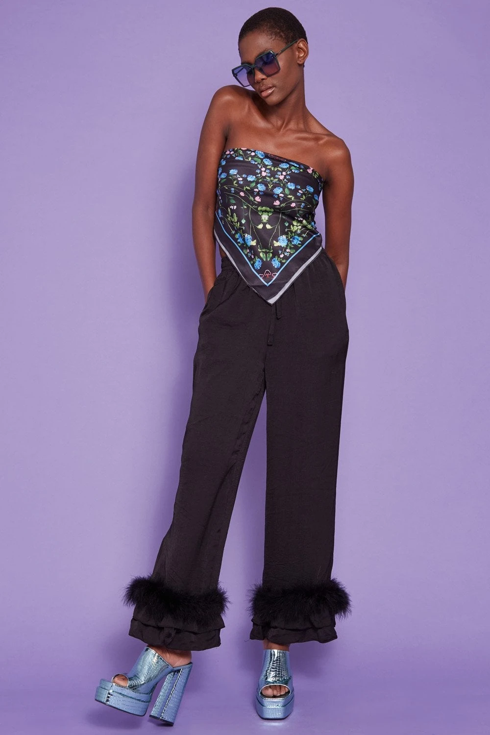 The silk scarf trend will never go out of fashion, this silk scarf features a really bold beautiful abstract print. The size of this scarf is perfect for hair wraps, styling as a top, or wearing around your neck. The possibilities are endless.
