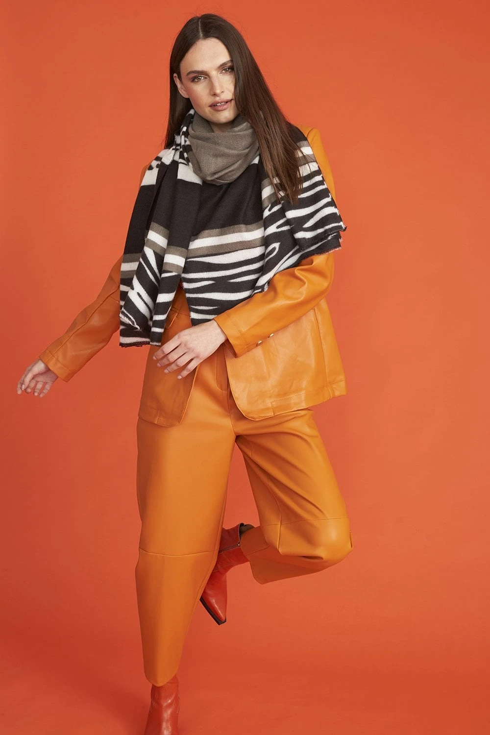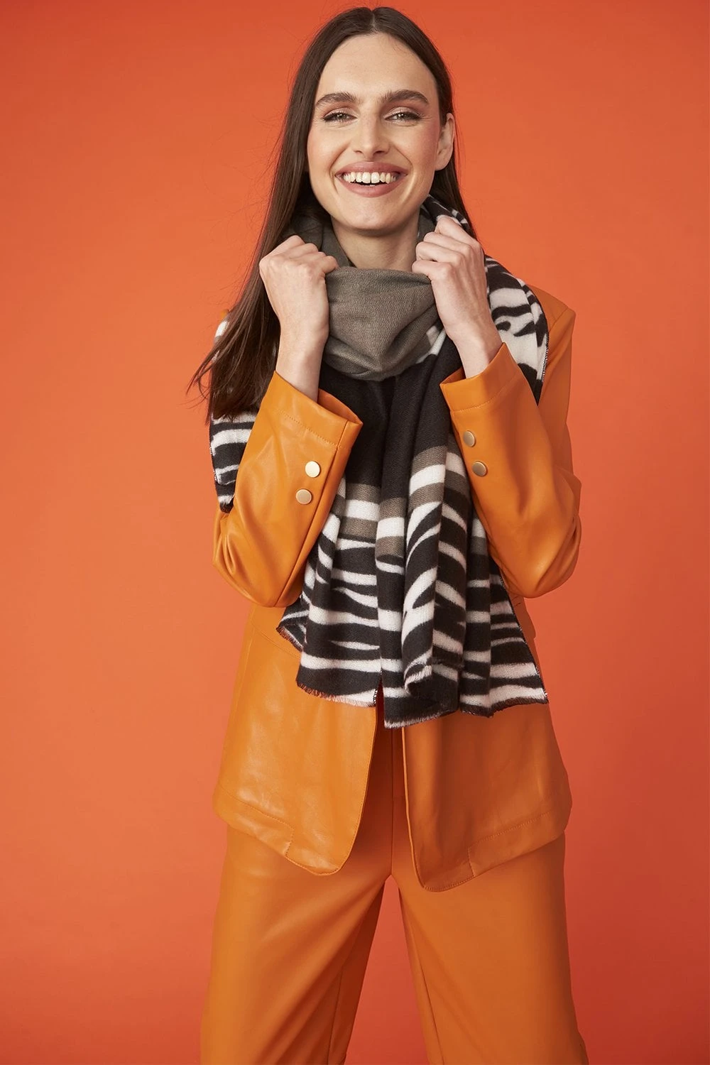 Our Zebra print scarf is perfect for creating dramatic layers and keeping warm. Made from the finest of cashmere blend this scarf is sure to keep you warm without adding additional weight to your look.