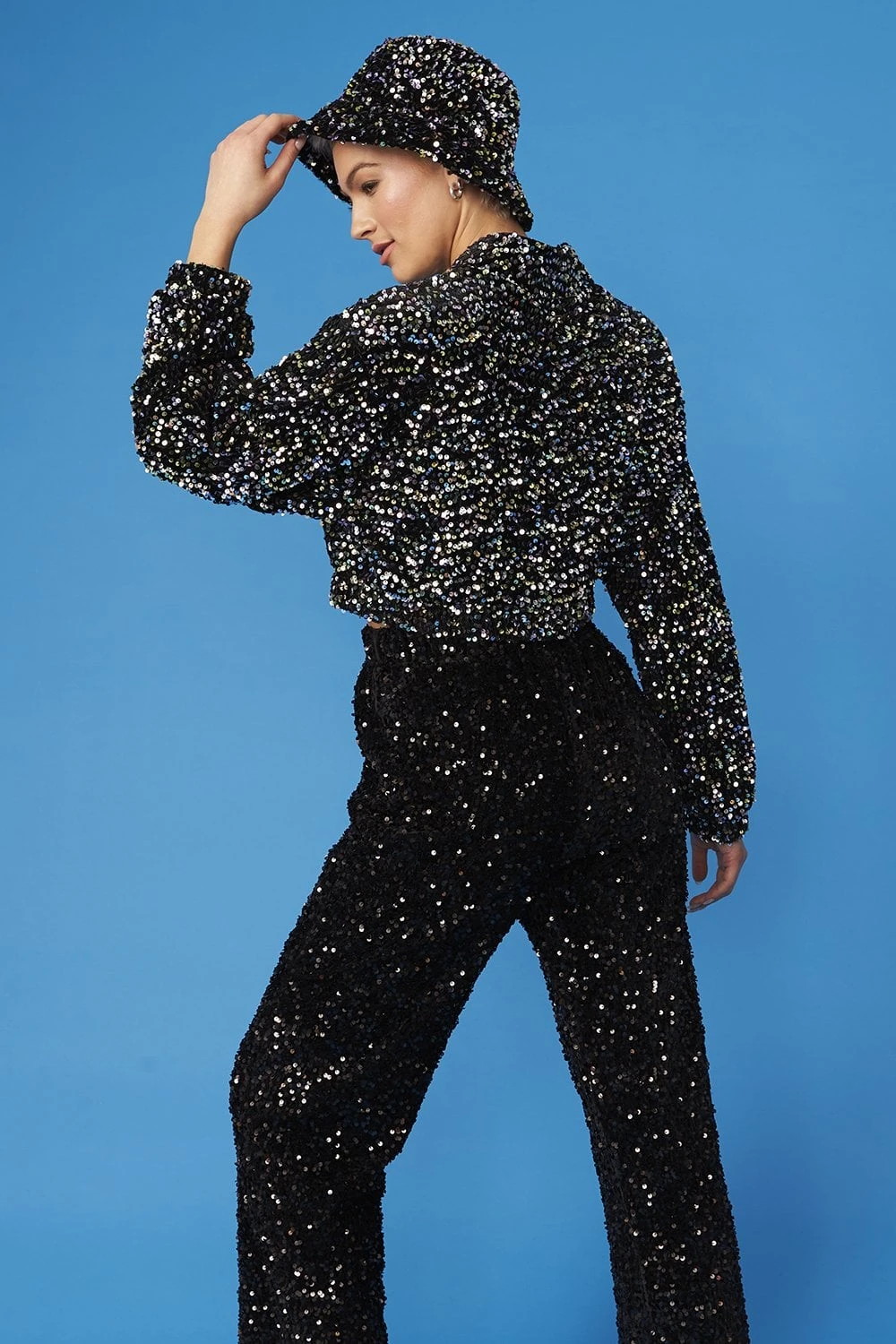 Top off your looks with a statement with this sparkling, sequin bucket hat. Available in a variety of colours!