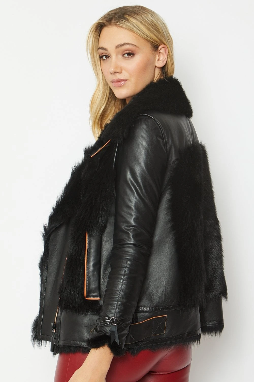 JAYLEY Black Shearling & Leather Gilet