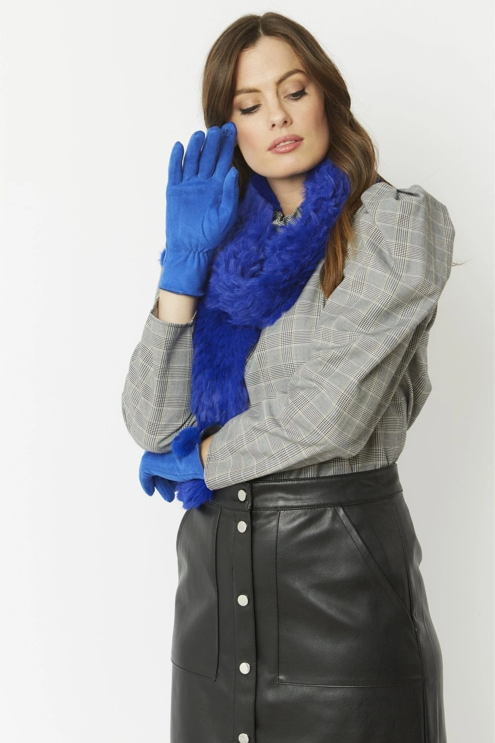 JAYLEY Blue Faux Suede Gloves With Faux Fur Pom
