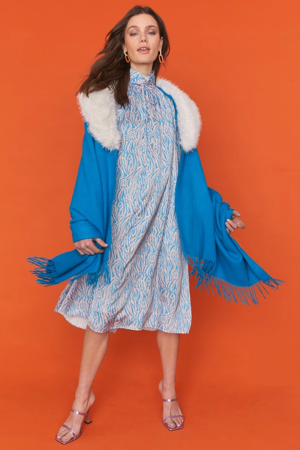 The perfect transitional piece, this feminine floaty Zebra print dress with its complementary pastel colours is just what you need for the transition season of Winter to Spring. Featuring a tie neckline, full-length sleeves and detailed tie cuffs. This dress is perfect for styling with a pair of knee-high cream boots or with your favourite strappy sandals in the height of Spring / Summer.