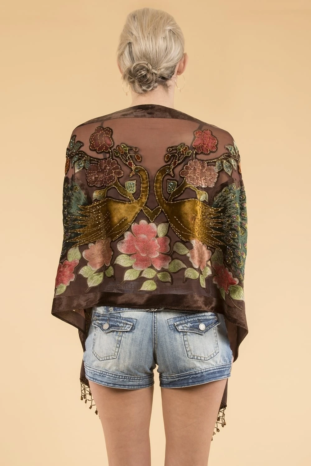 Luxury Jayley Peacock Silk Devore Shawl. Lovely styled as you like. Hand wash only, One size