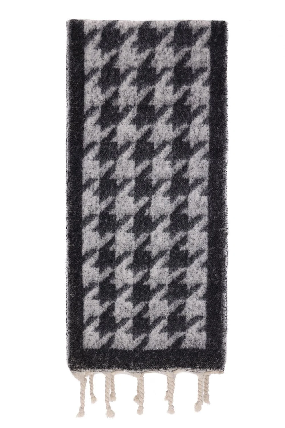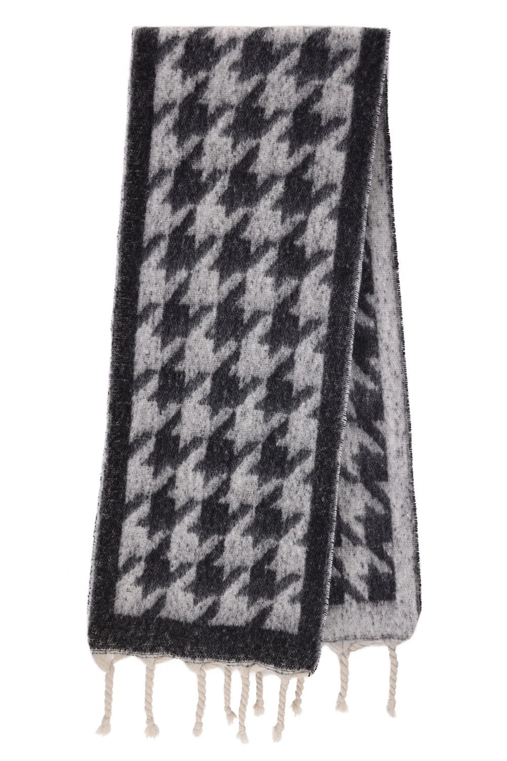 JAYLEY Cashmere Blend Houndstooth Check Scarf In Black