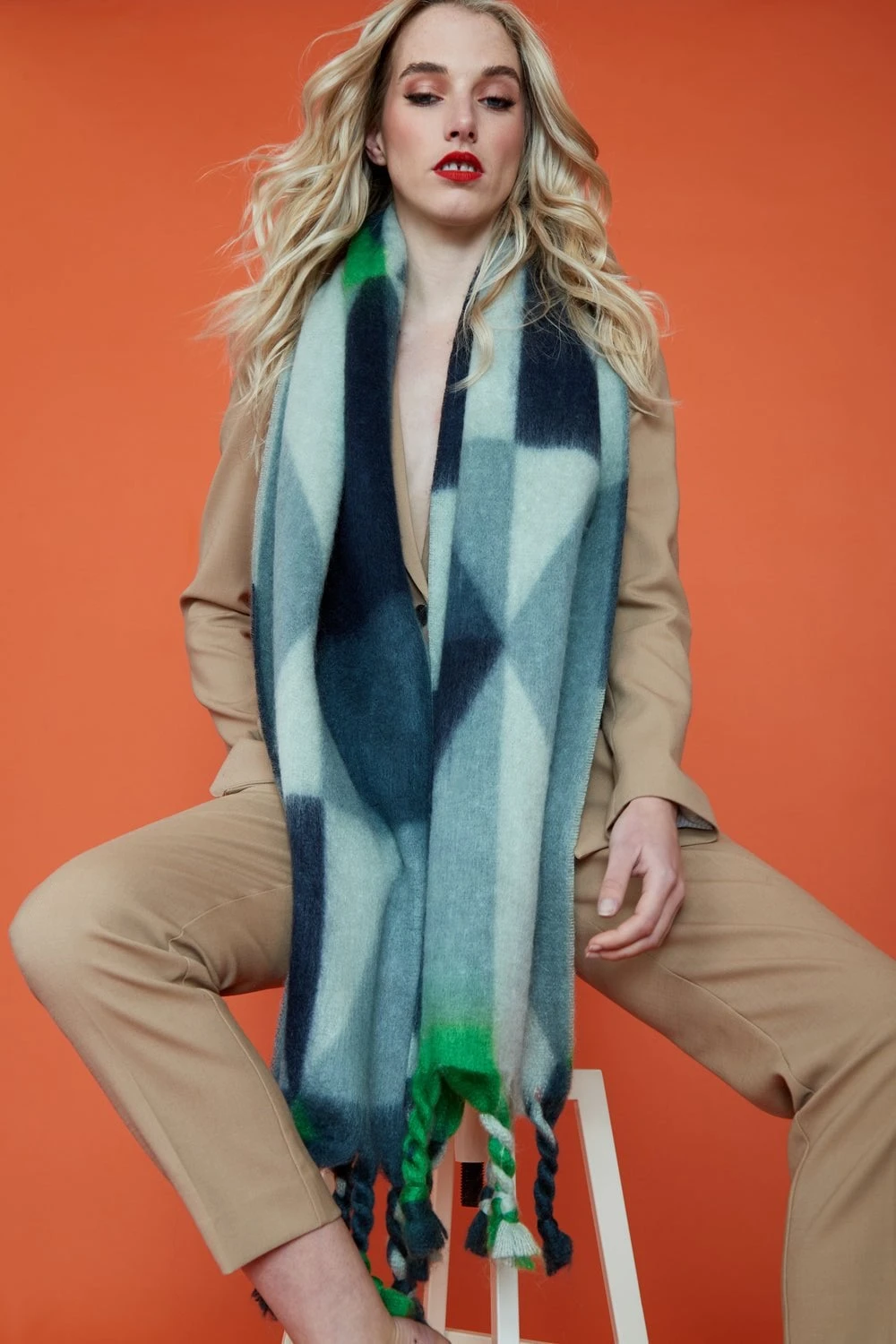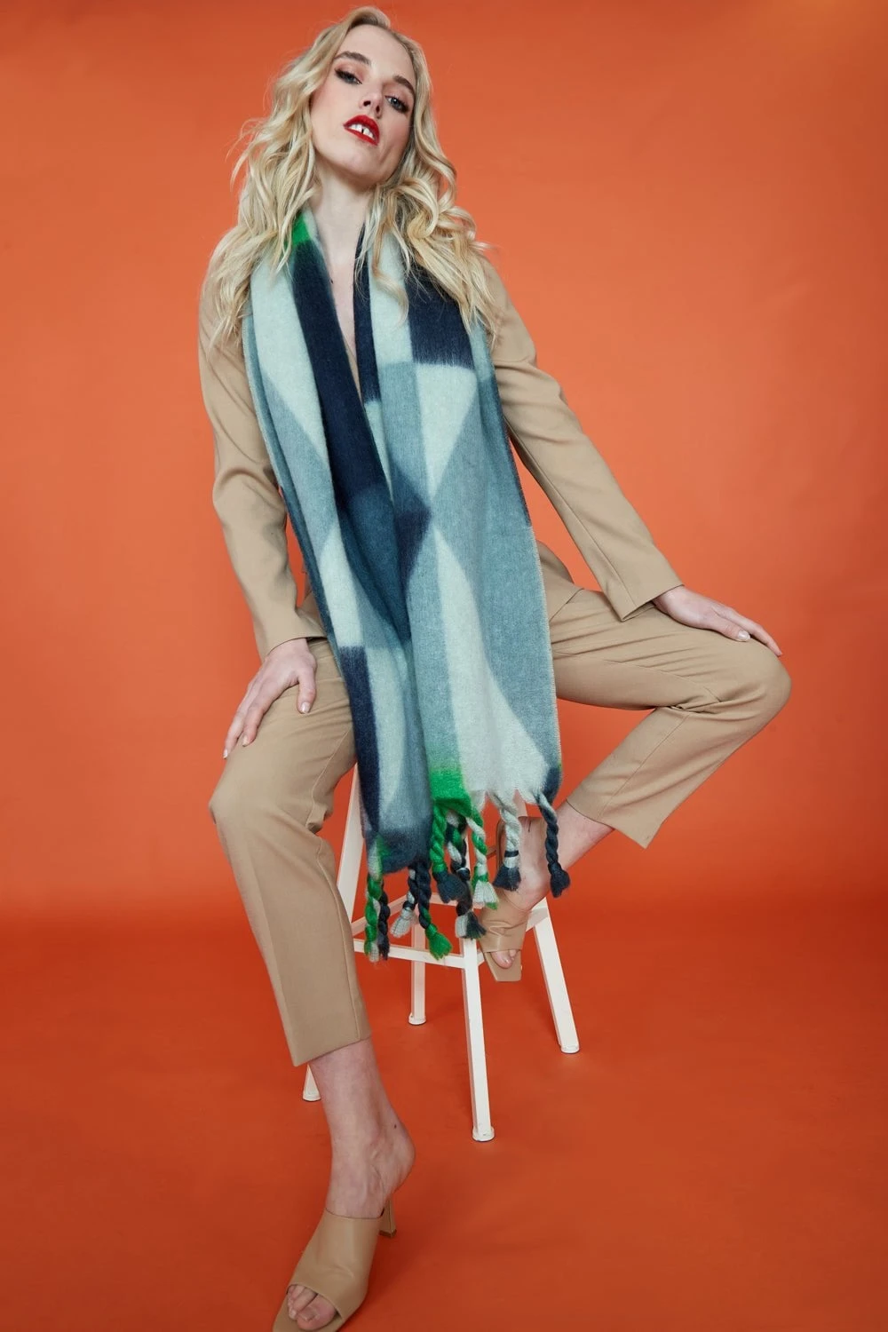 A must-have for this season, our cashmere blend scarf with geometric design and tassled edge will become a wardrobe staple.