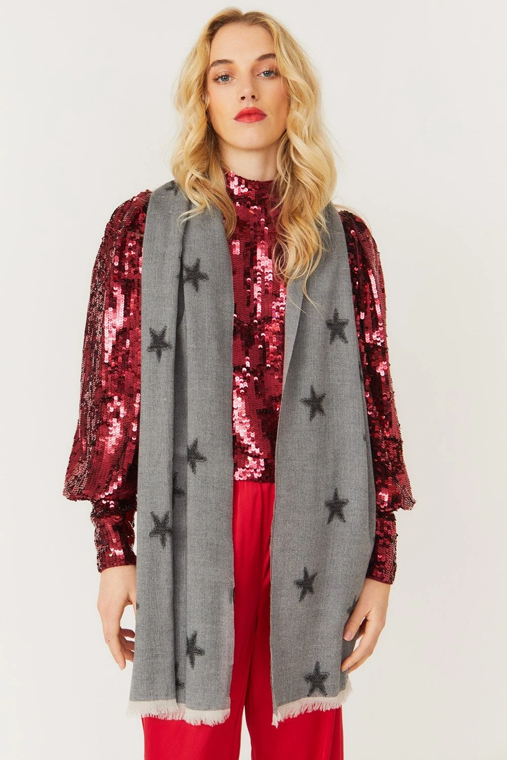 A must-have for the winter season, this cashmere blend scarf with a star design will become a wardrobe staple.