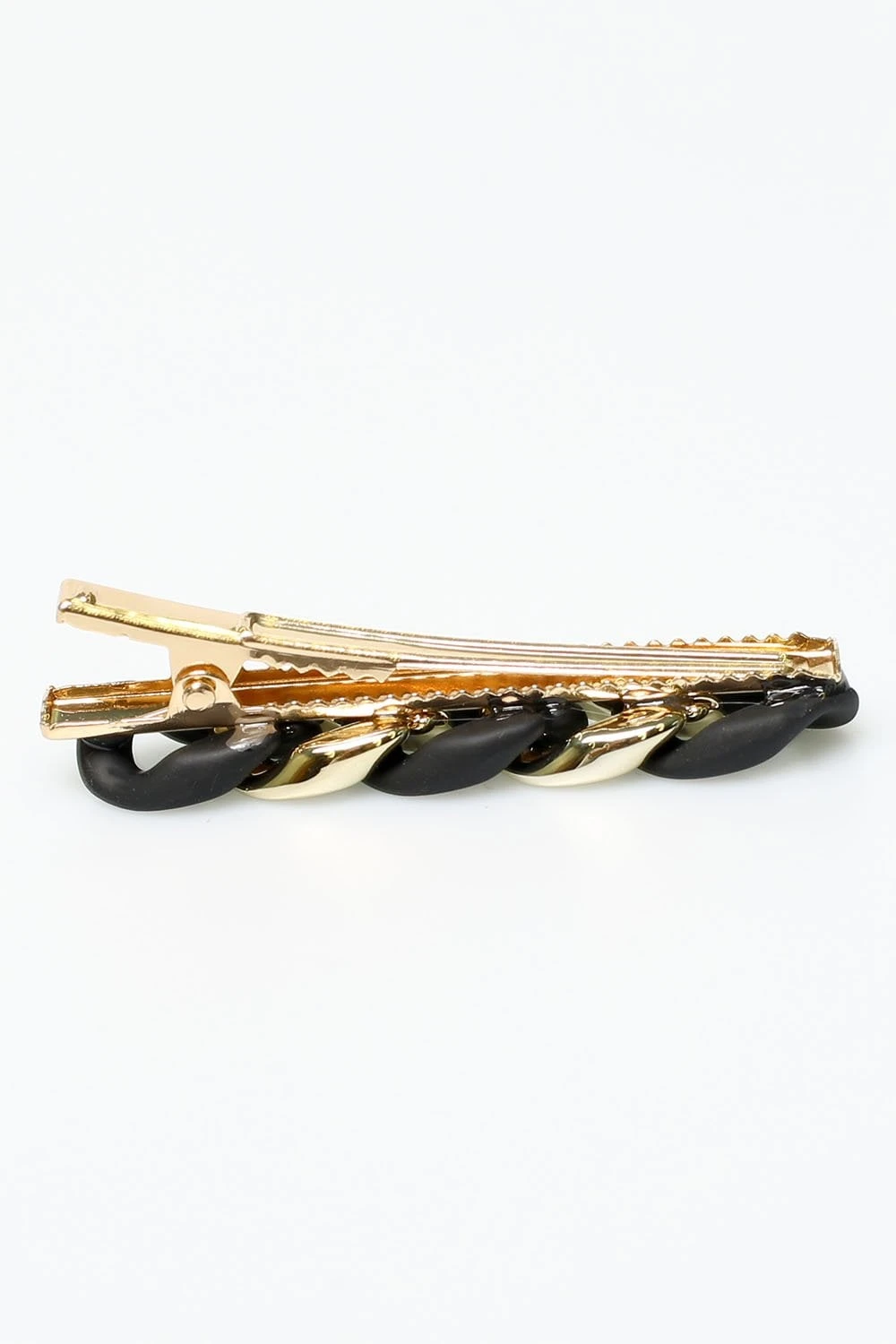 We adore this luxurious chain hair clip featuring a golden clip with black chain detailing This will add the extra detail you need to finish off your outfit!