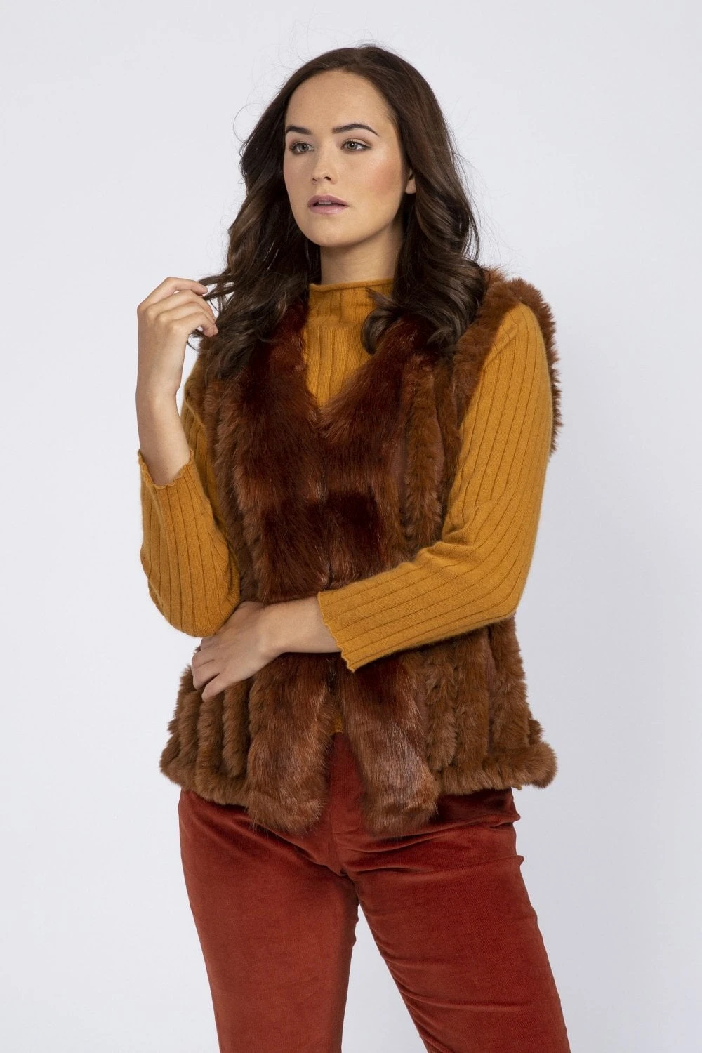 JAYLEY Chocolate Cashmere Blend Faux Fur Gilet