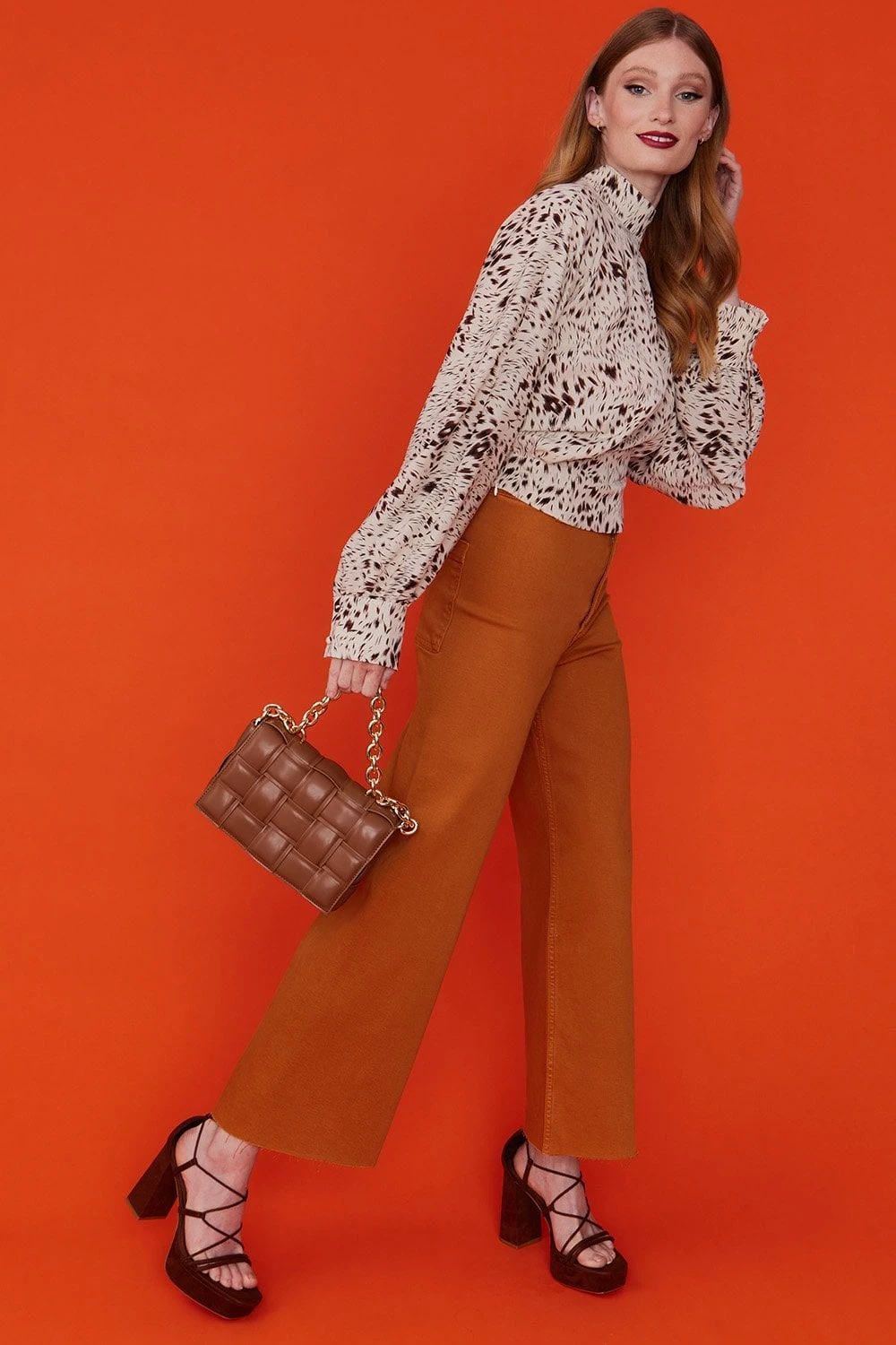 JAYLEY Chocolate Eco Leather Cross Woven Clutch Bag With Gold Chain