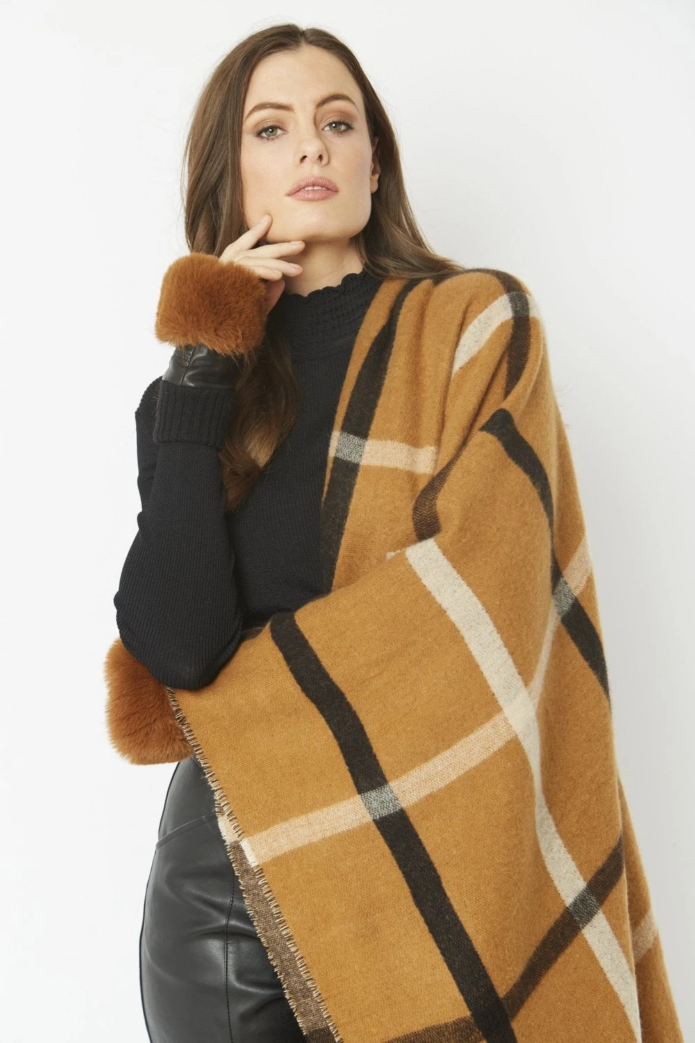 JAYLEY Chocolate Faux Fur Fingerless Gloves