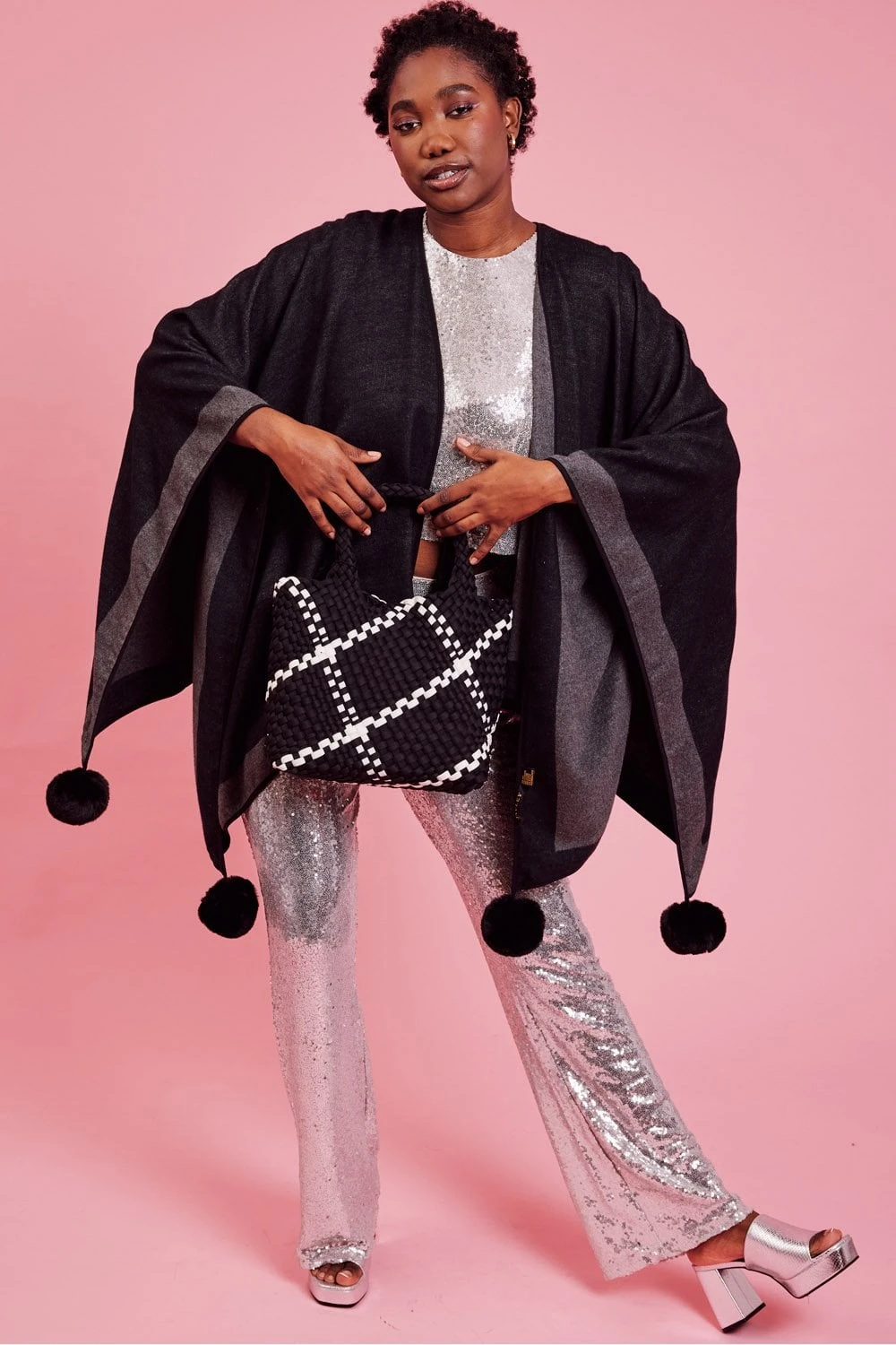 Gorgeous hand weaved Leather bag with checked contrast design. Easy grab handles and leather hard base. This bag also features a smaller zip bag inside allowing you to keep your belongings safe