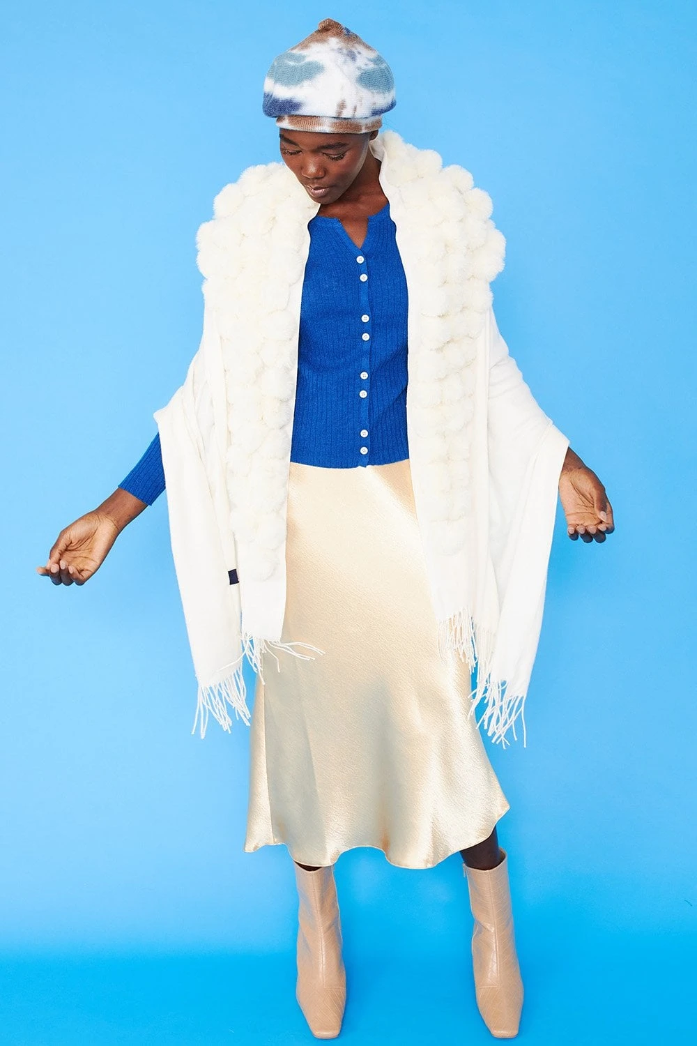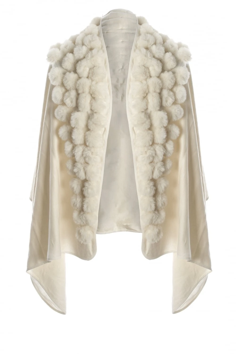 JAYLEY Cream Cashmere Blend Faux Fur Pom Pom Wrap