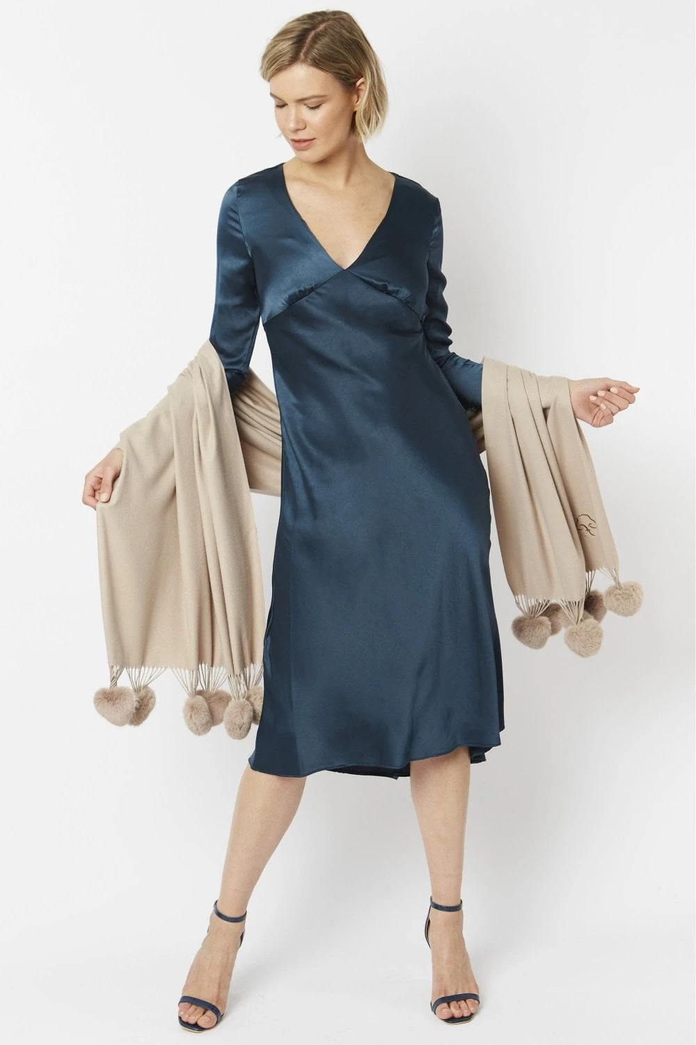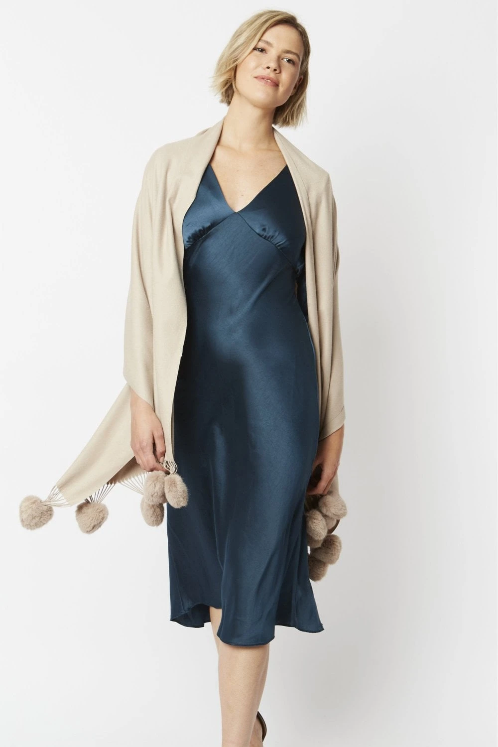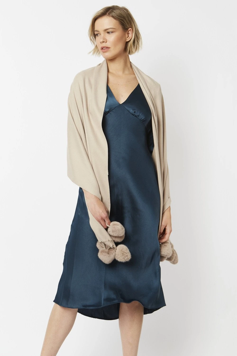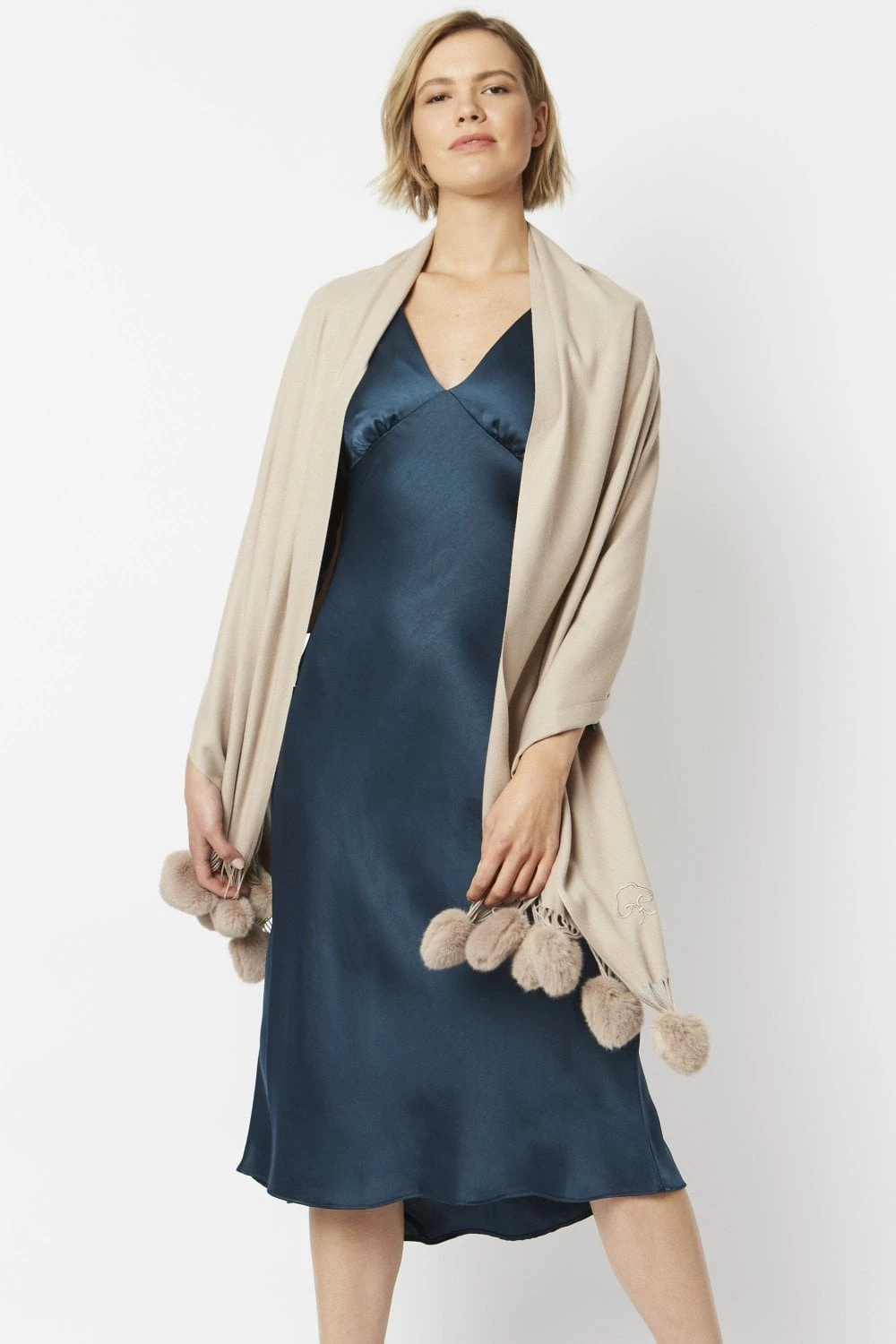 JAYLEY Cream Cashmere Blend Wrap With Heart Poms