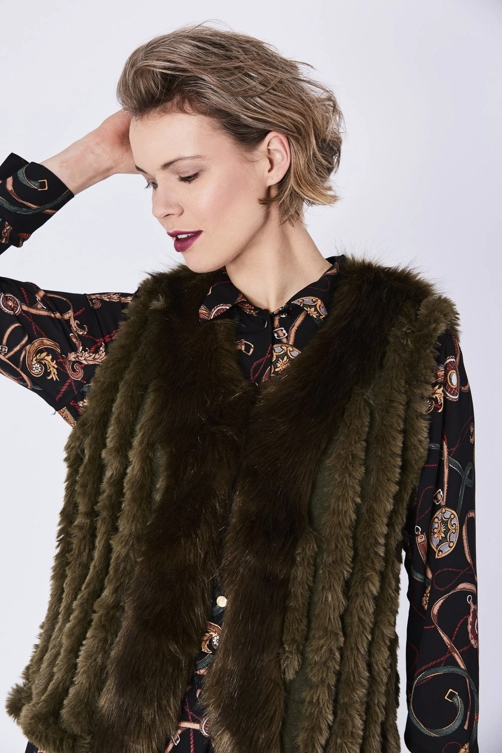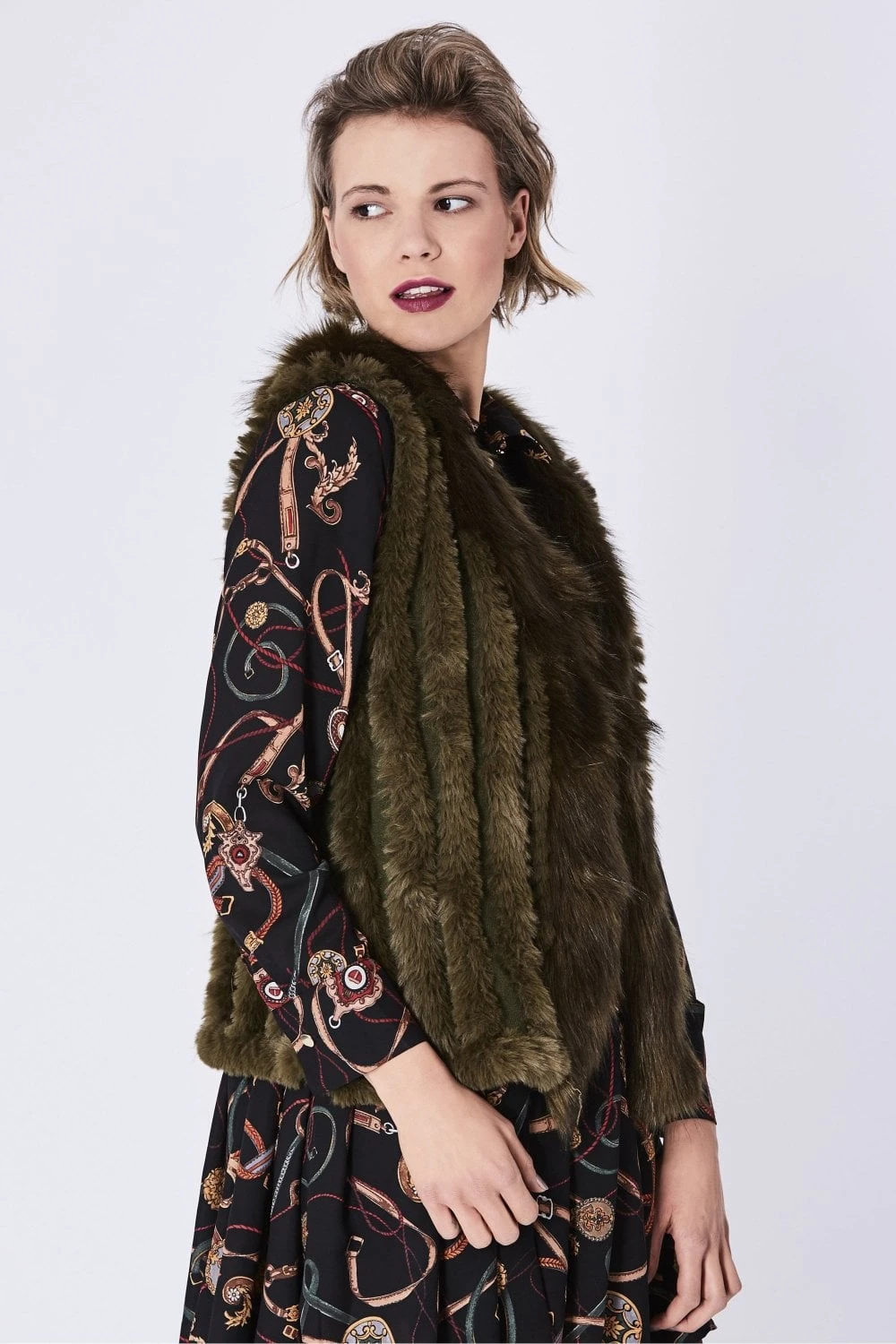 JAYLEY Green Cashmere Blend Faux Fur Gilet