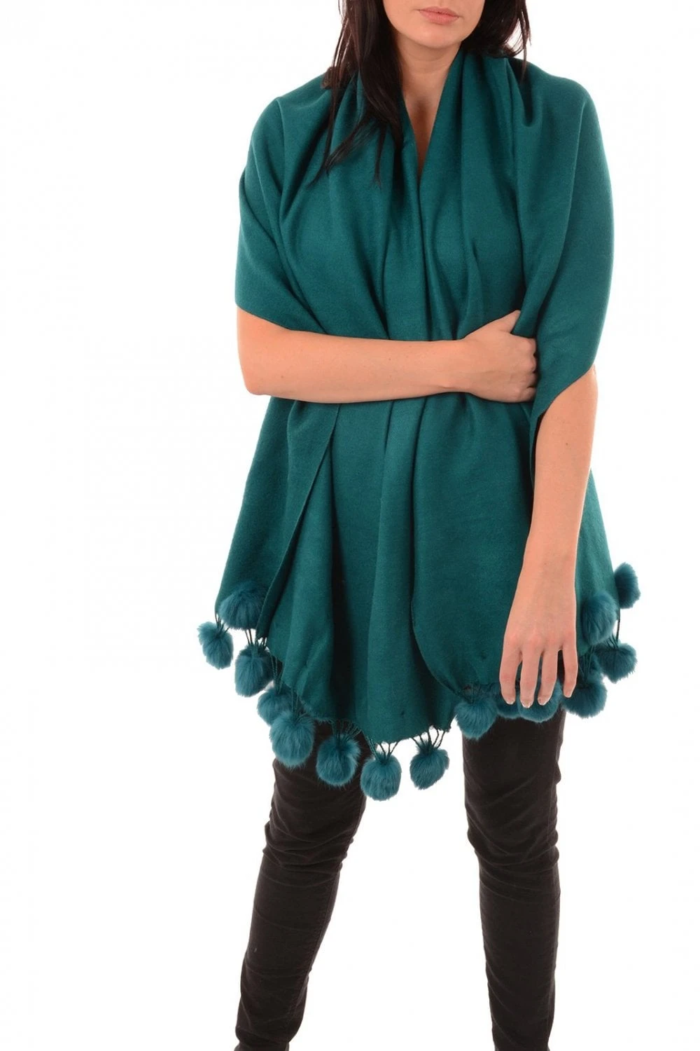 Easy to wear this delightful scarf is both practical and stunningly stylish. With its feature pom pom finishing this item is wonderful over an occasion dress or silk top to keep you warm and stylish.