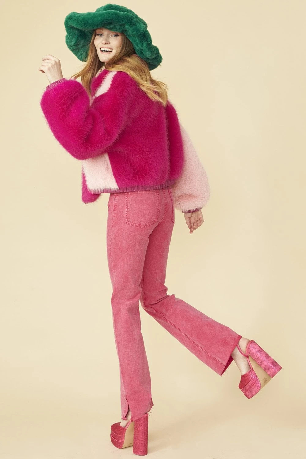 JAYLEY Green Faux Fur Oversized Hat