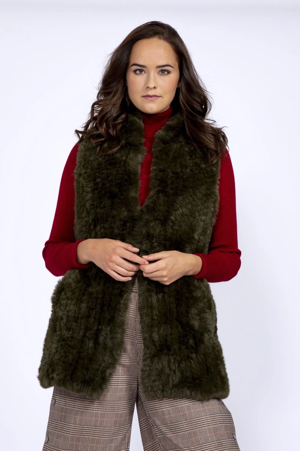 JAYLEY Green Hand Knitted Faux Fur Gilet