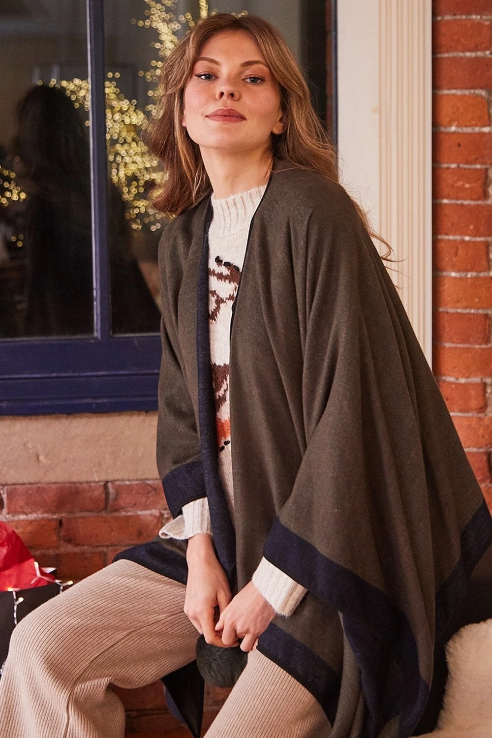 Green Luxury Reversible Cashmere Blend Pom Pom Wrap