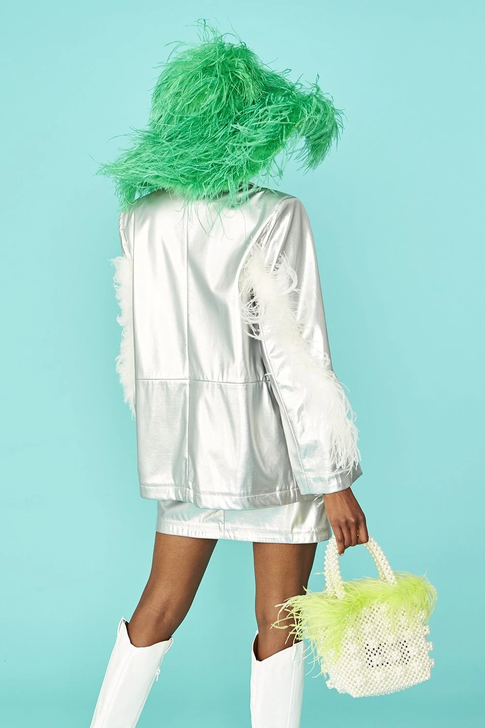 Feather hats just got upgraded. Add a bold touch of colour and playfulness to you look with our silk-lined ostrich feather oversized hat.