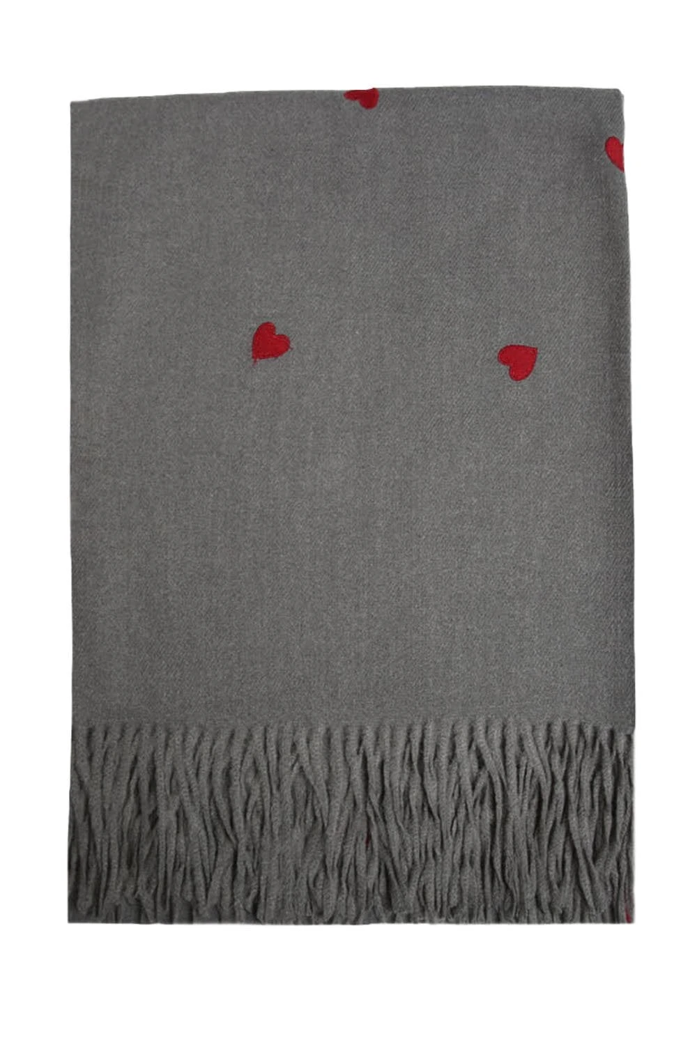 Gorgeous cashmere blend scarf or wrap that can be worn over your shoulders or around your neck. Featuring a pretty love heart embroidery and tassel hem.