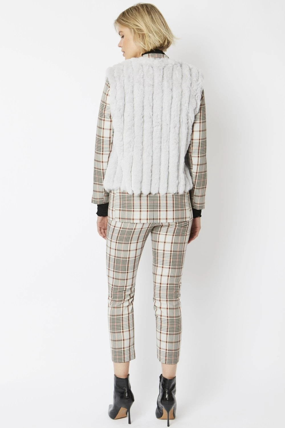 JAYLEY Grey Faux Fur Faux Suede Vertical Stripe Gilet