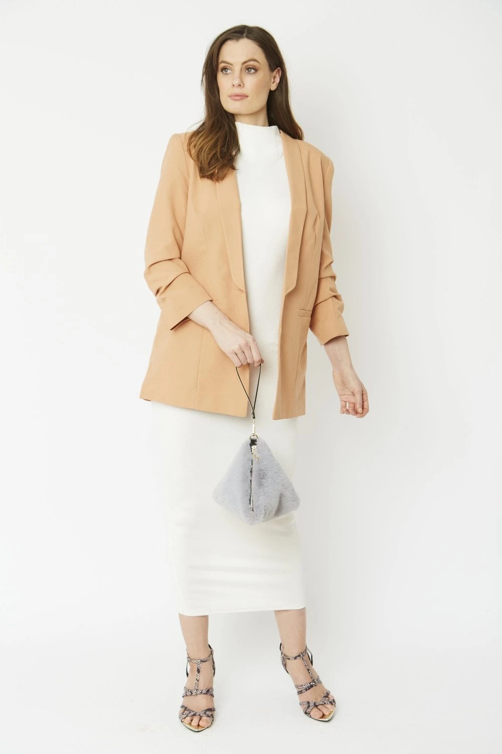 JAYLEY Grey Pyramid Faux Fur Bag