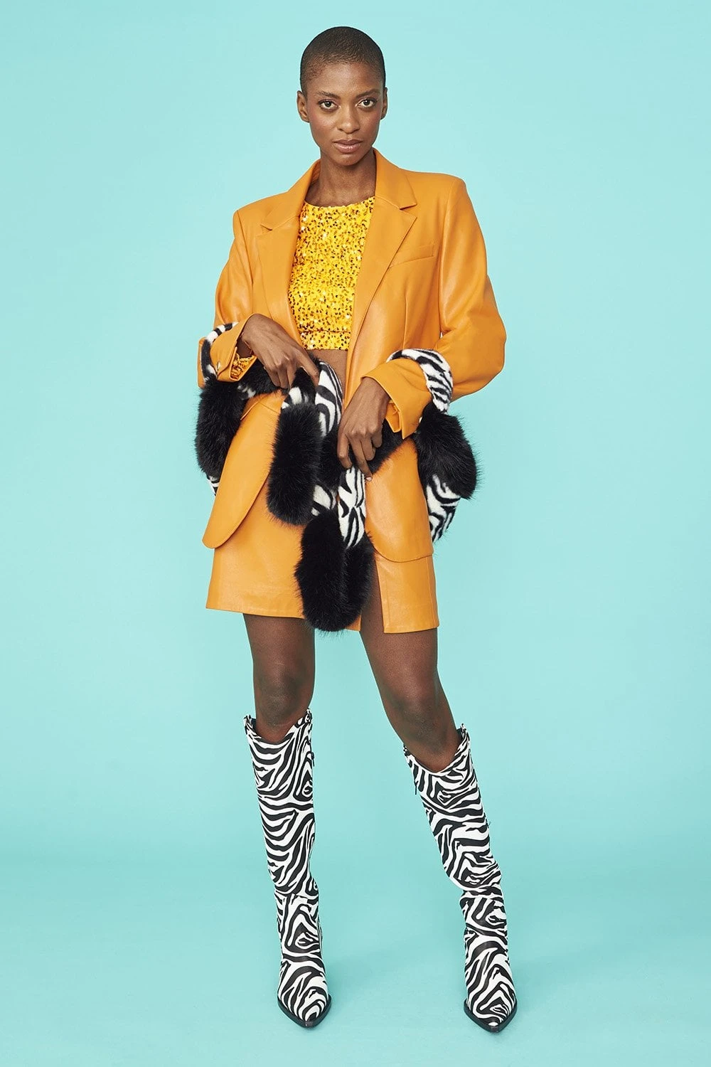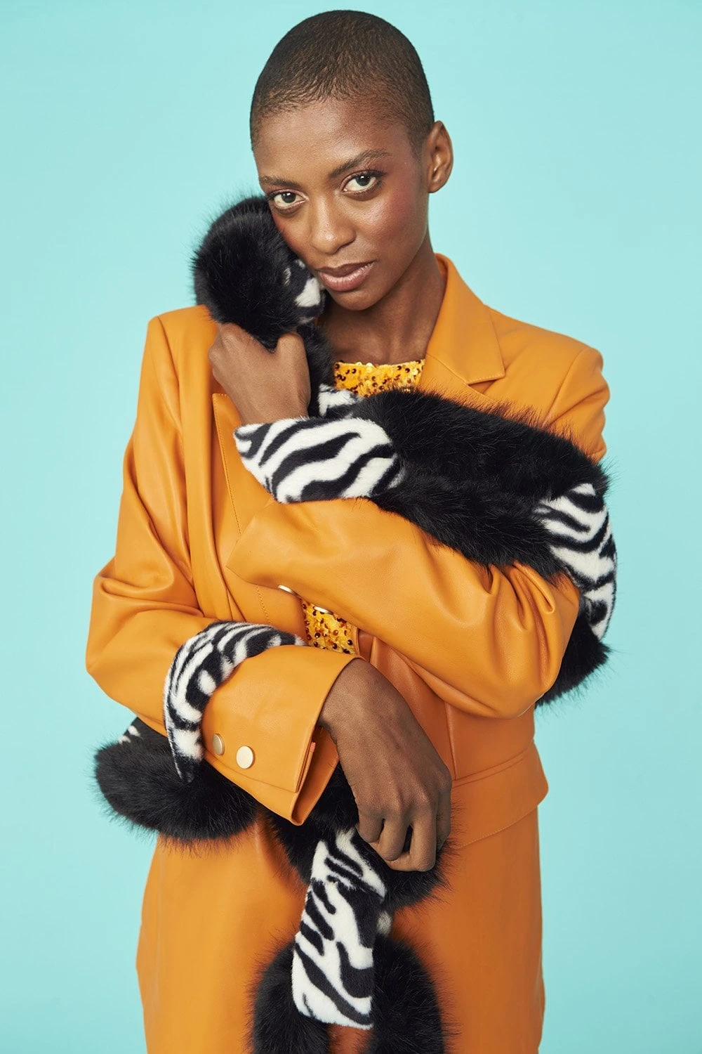 Elevate your outfit with our super soft contrasting colour and animal print faux fur scarf is the perfect way to add a pop of colour to your outfit, featuring a unique chain detailing.