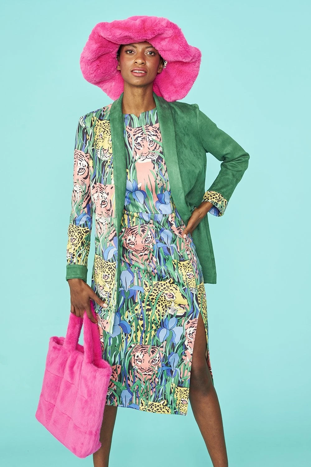 JAYLEY Hot Pink Faux Fur Oversized Hat