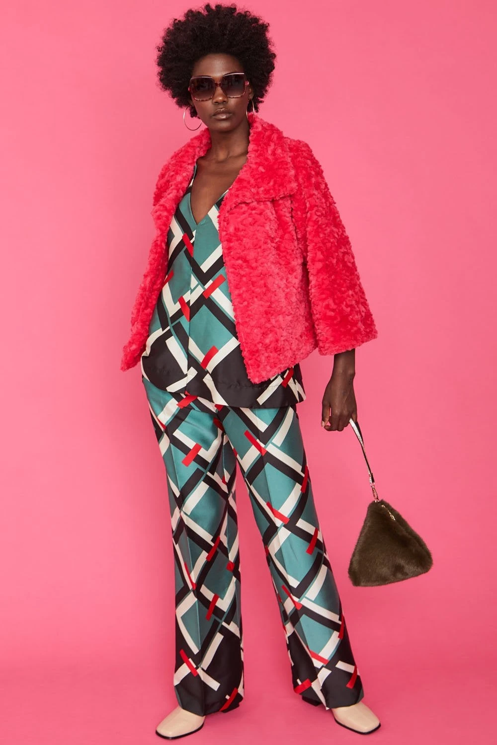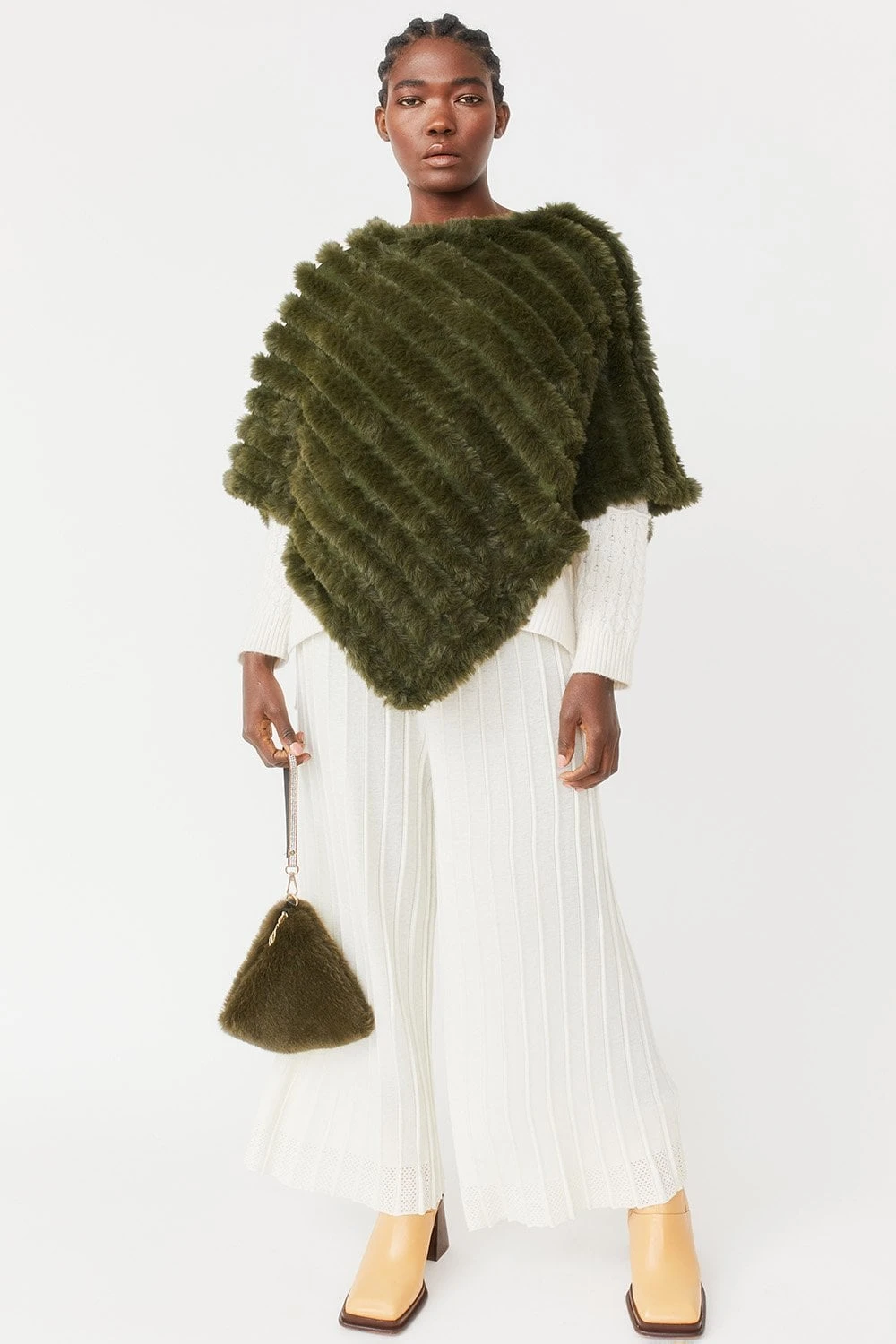 JAYLEY Khaki Pyramid Faux Fur Bag