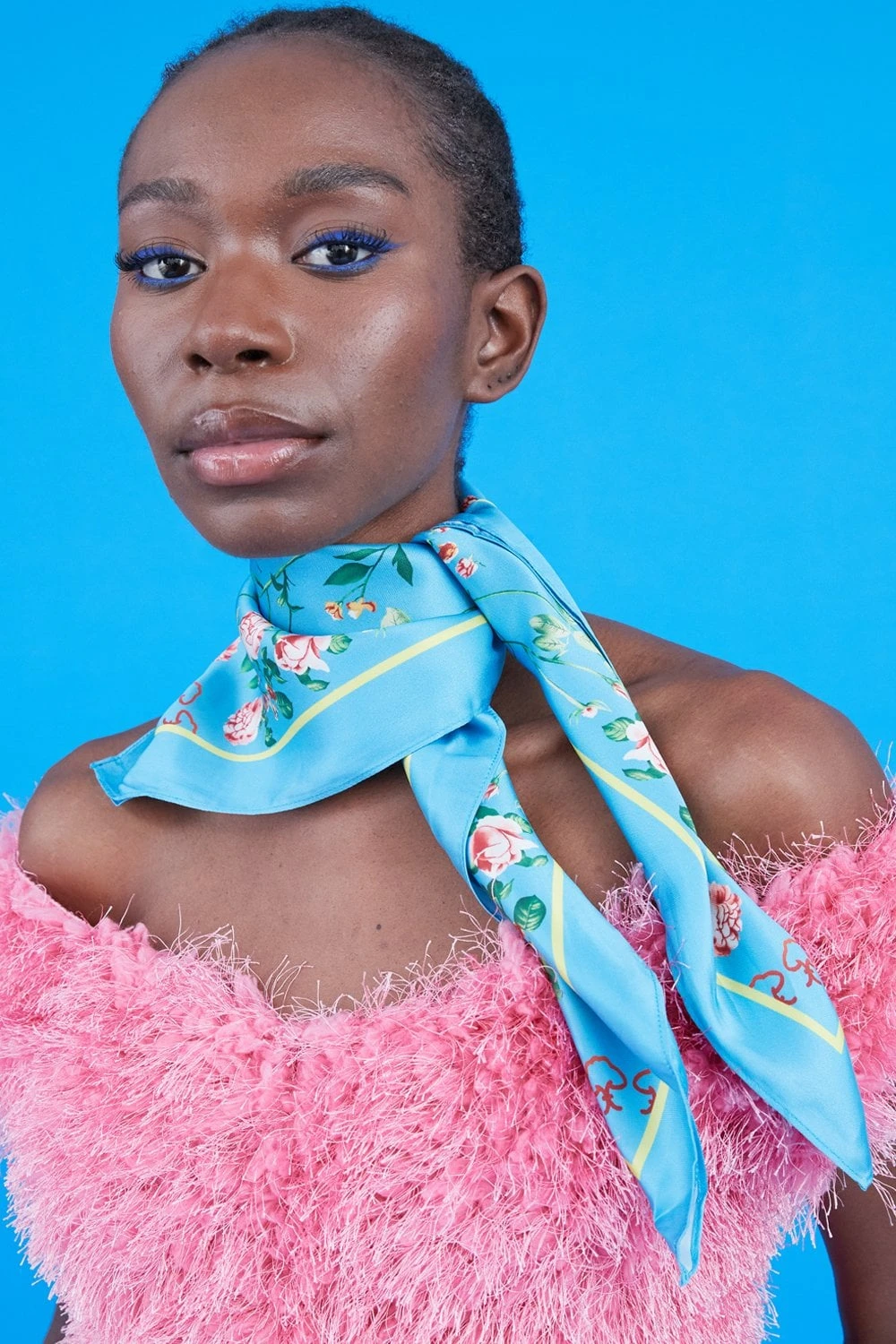 The silk scarf trend will never go out of fashion, this silk scarf features a really bold beautiful abstract print. The size of this scarf is perfect for hair wraps, styling as a top, or wearing around your neck. The possibilities are endless.