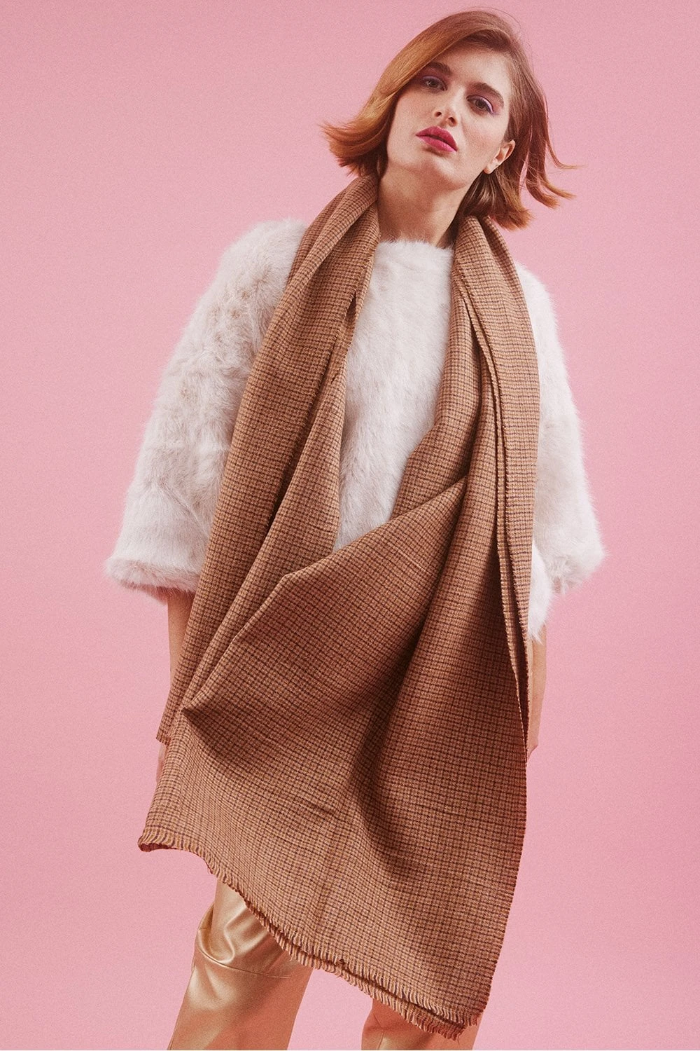 Luxury cashmere blend wrap in classical tartan check design with fringed hem. A lovely piece to add to your Autumn / Winter Collection.