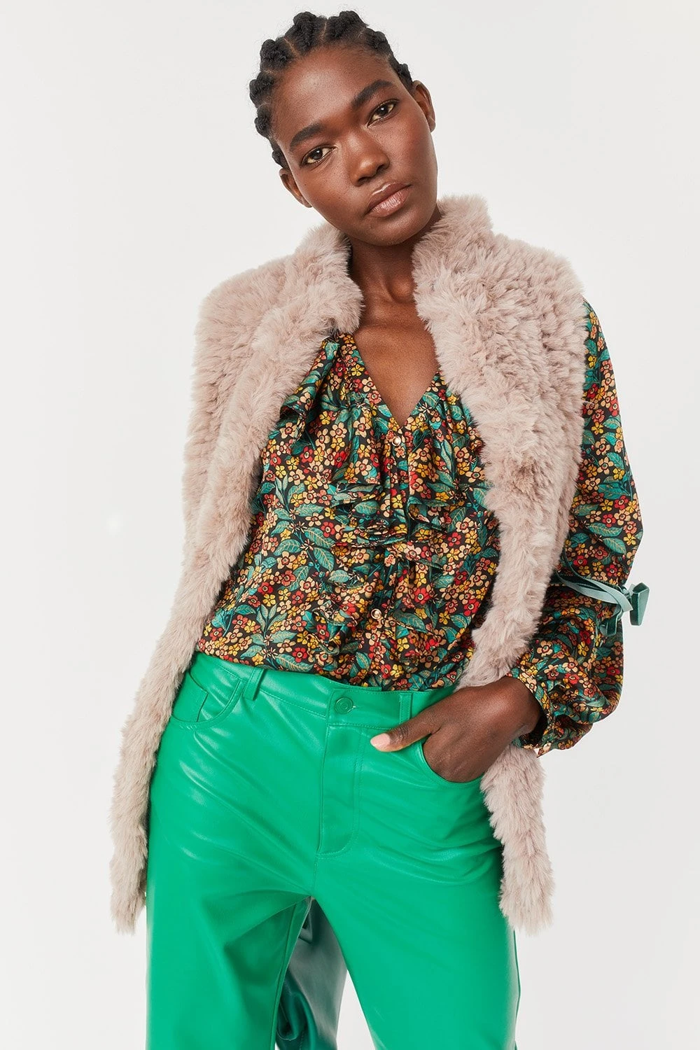 JAYLEY Mocha Hand Knitted Faux Fur Gilet