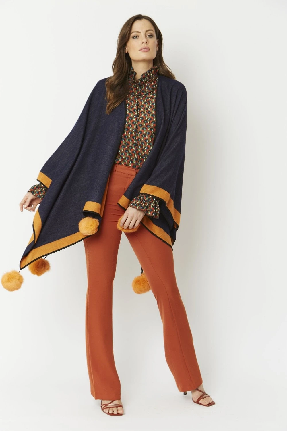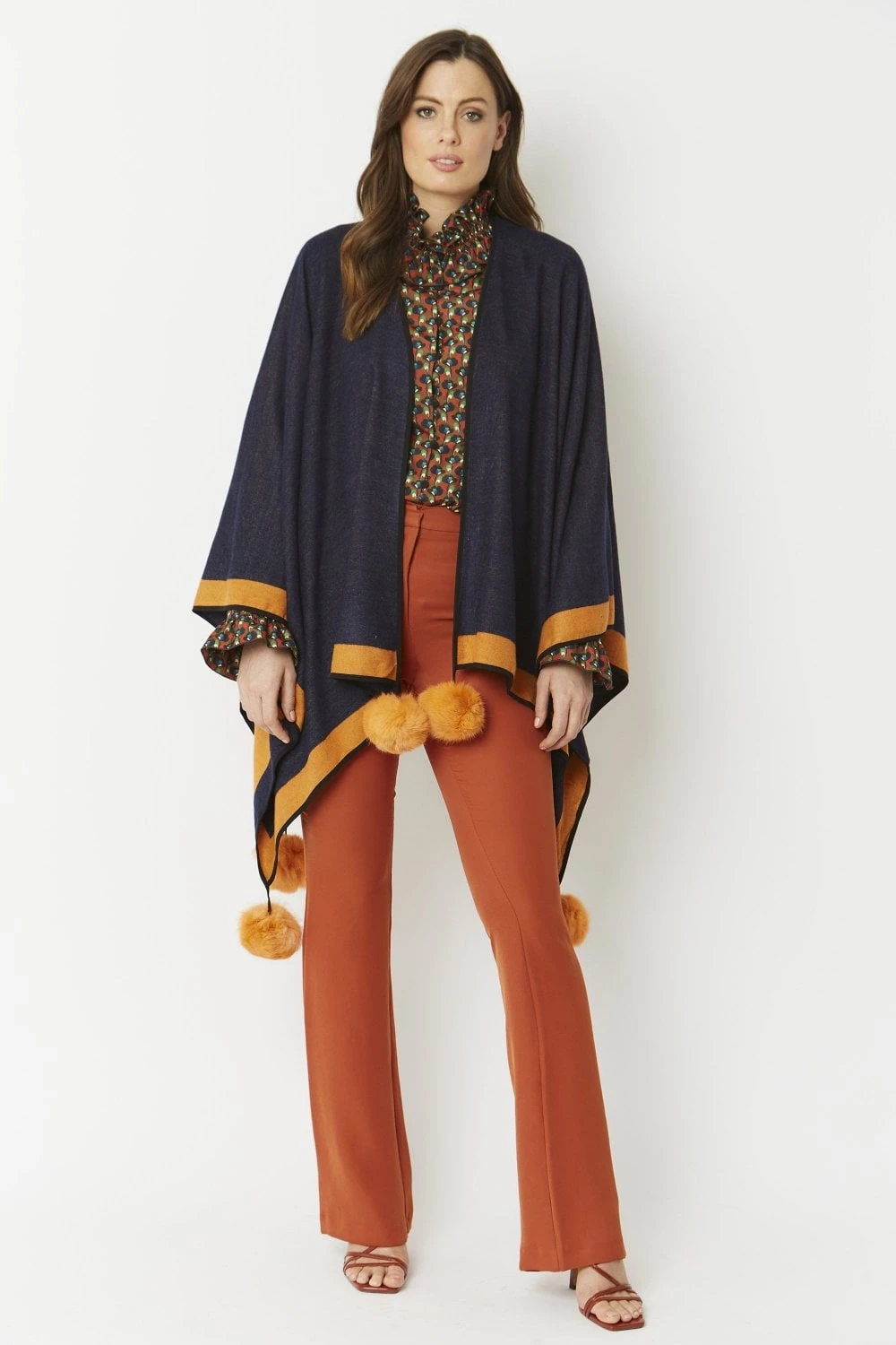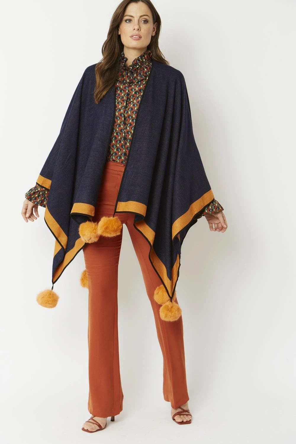 Luxury cashmere blend pom pom wrap with statement matching pom poms, perfect to wrap around any outfit in the winter.