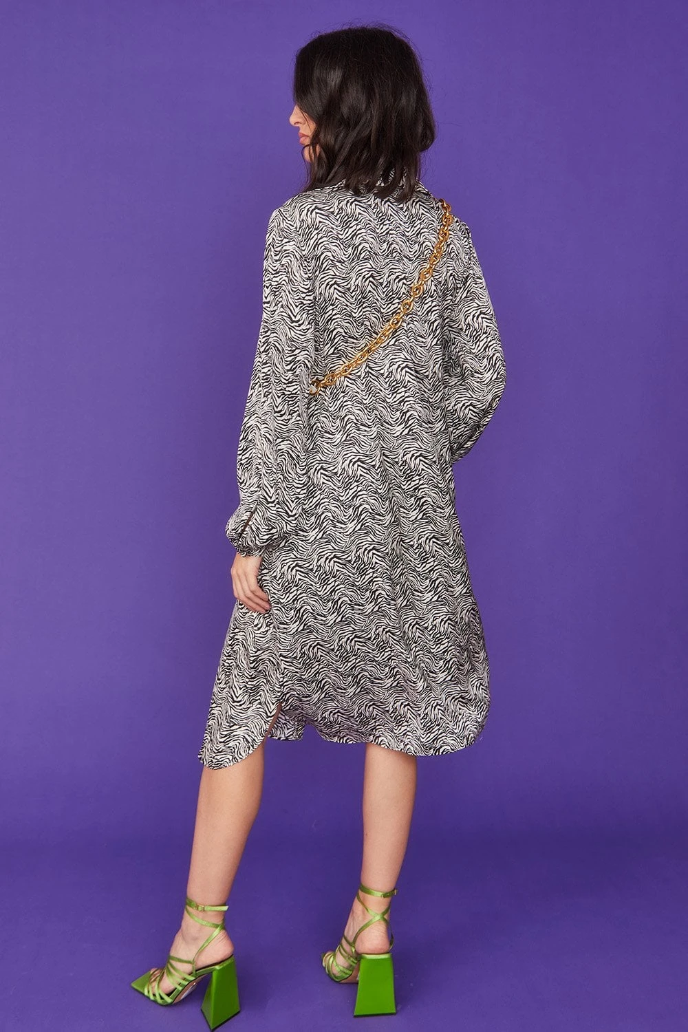 Maximise your seasonal style with this abstract Zebra print midi dress by Jayley. Made from lightweight and floaty material this classical oversized shirt dress is perfect for many occasions.