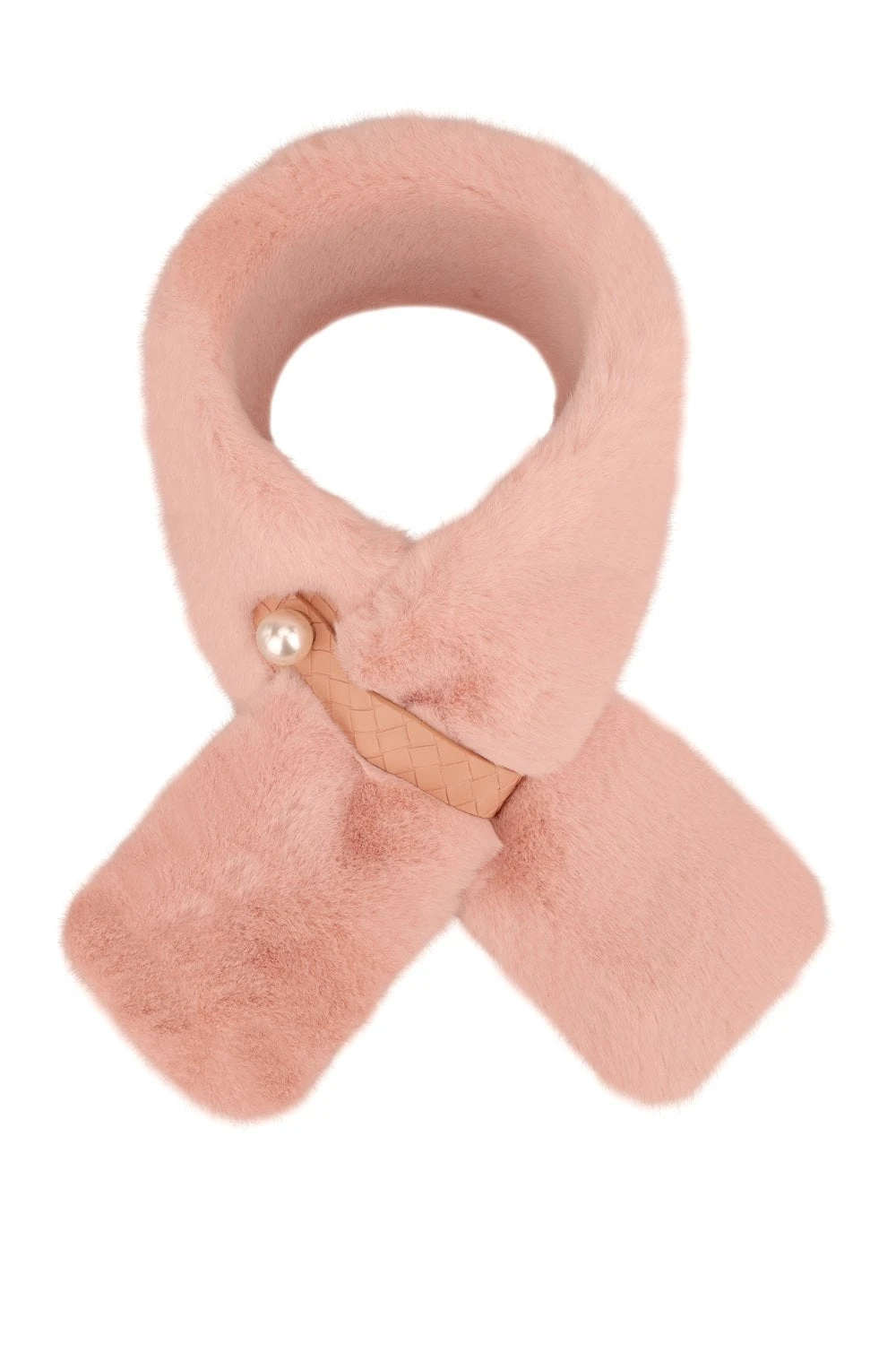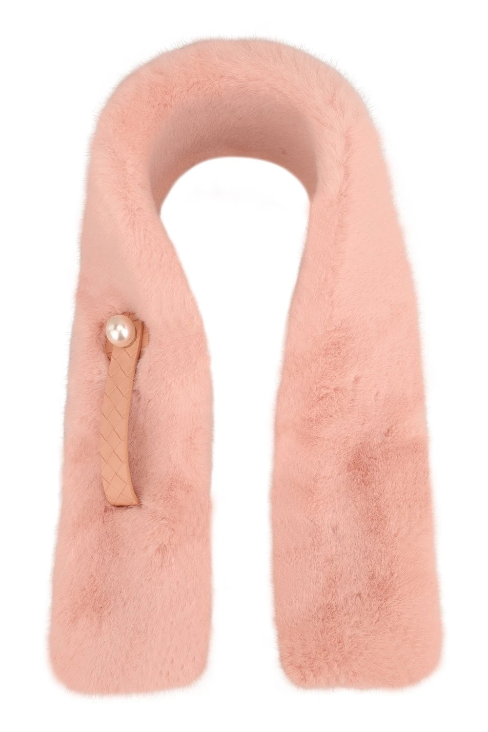Snuggle up in luxury in this faux fur scarf. Perfect for adding a touch of colour to your look. This scarf can be fastened snuggly around your neck using the Pearl and leather fastening.