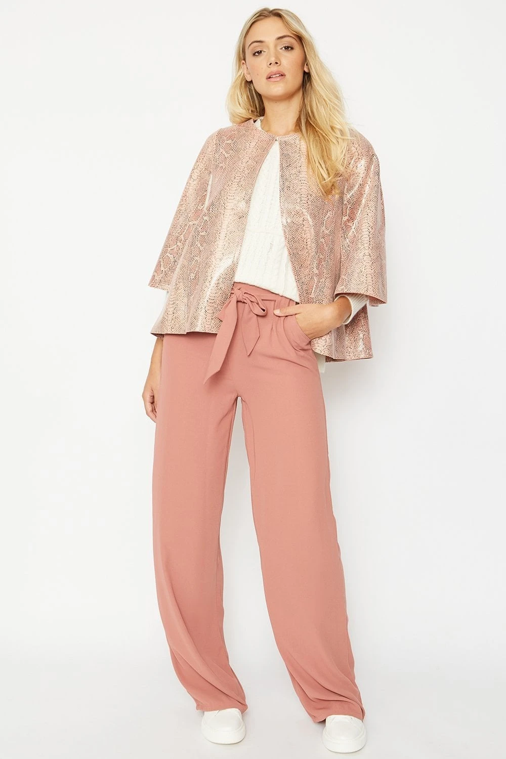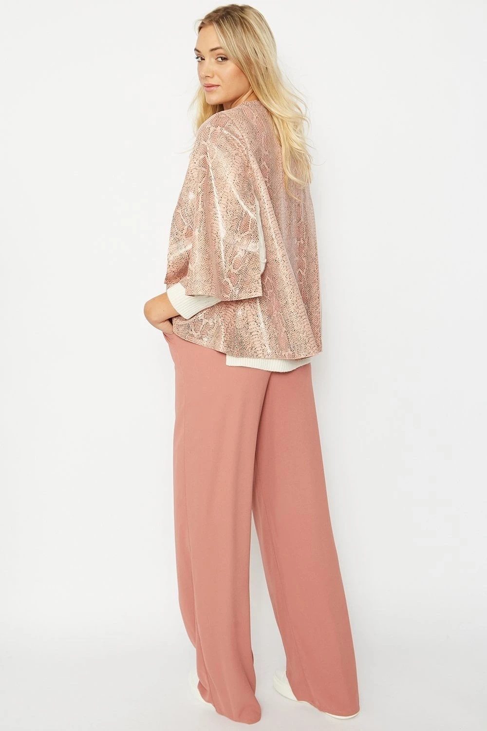 JAYLEY Pink Snake Print Faux Suede Cape