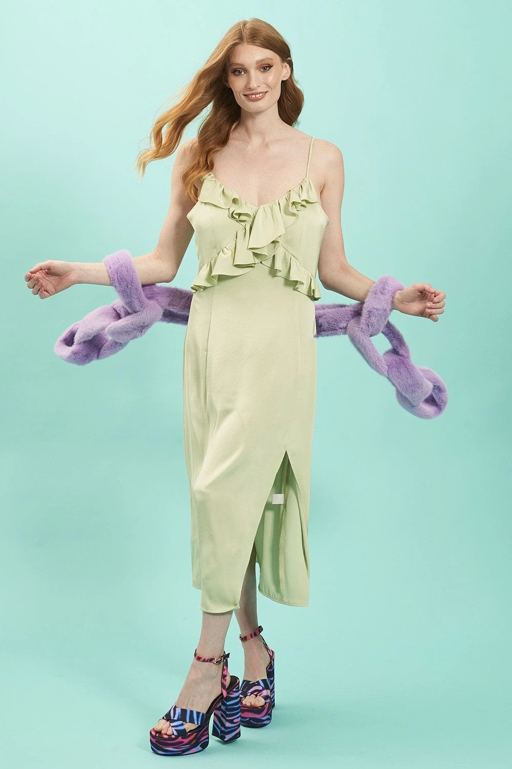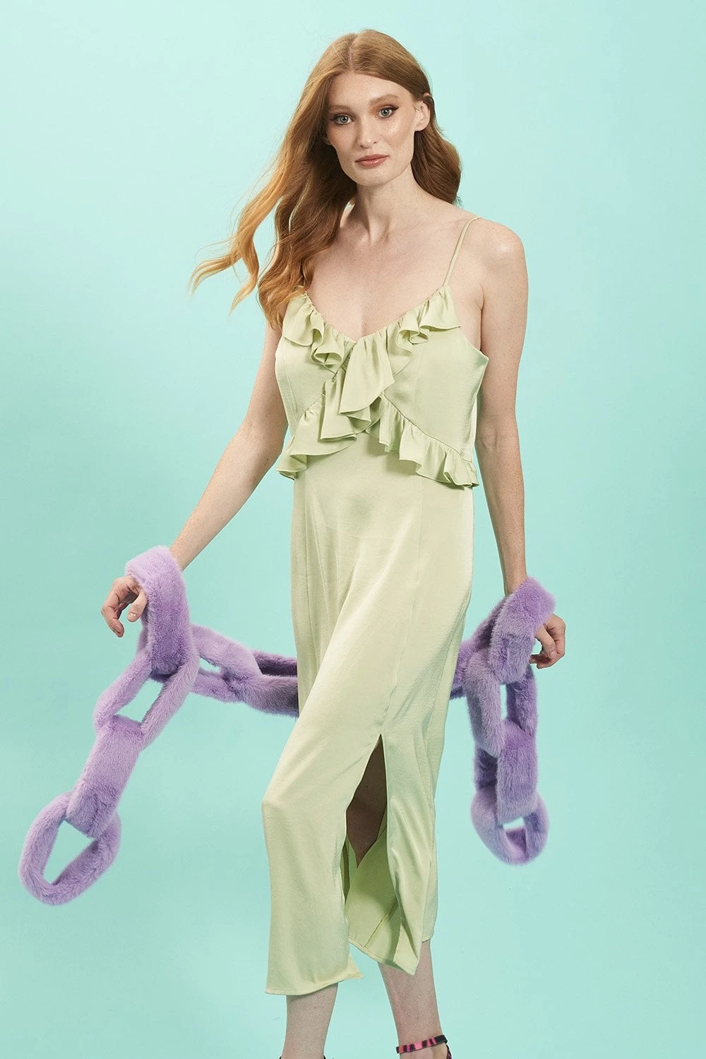 Elevate your outfit with our super soft blue faux fur scarf is the perfect way to add a pop of colour to your outfit, featuring a unique chain detailing.
