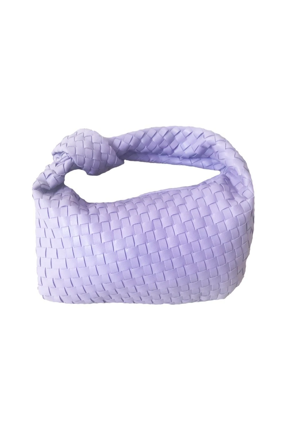 Rounded hobo bag in woven by hand with a curved, seamless structure and soft, voluminous shape with signature knot detail on the handle.