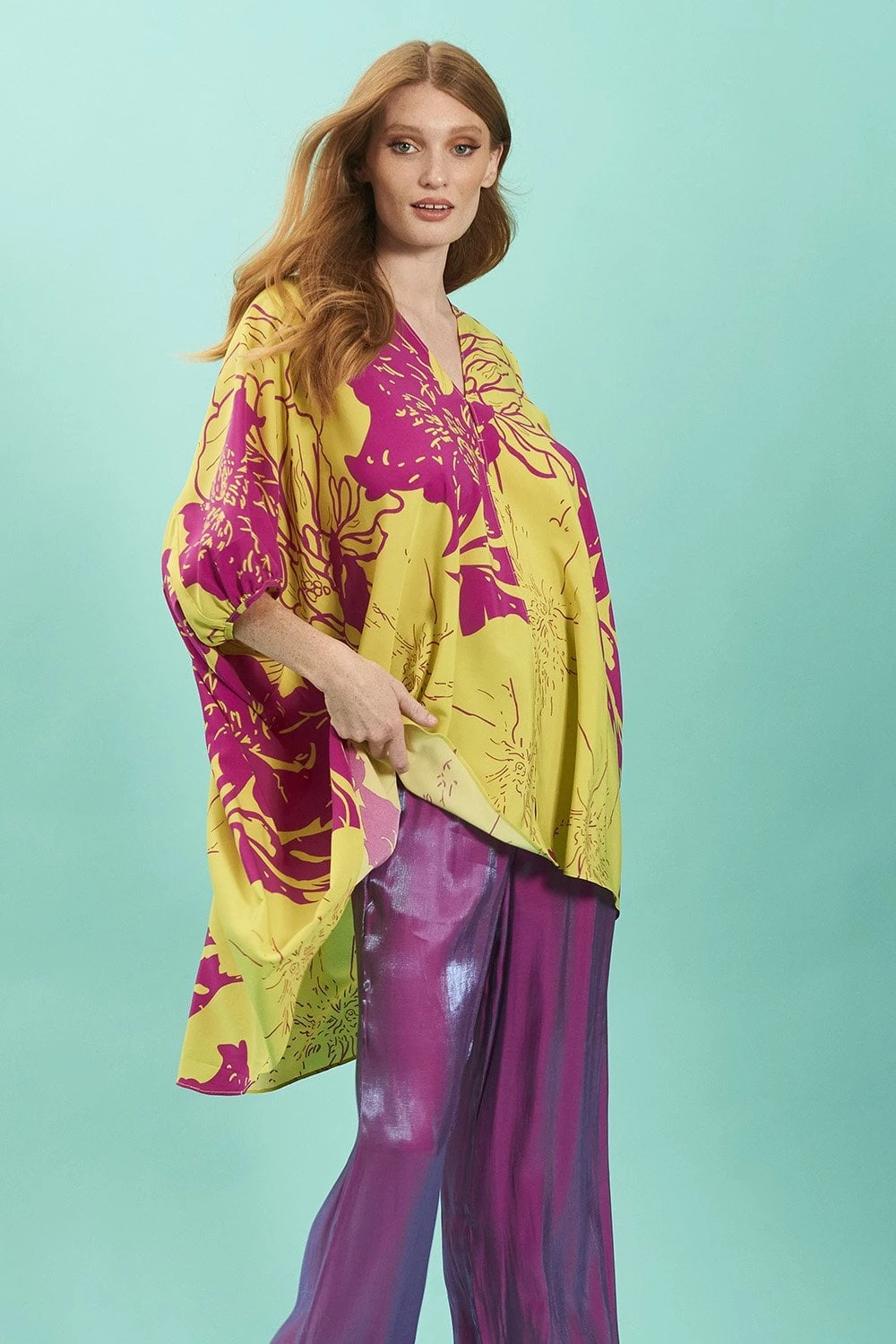 Nothing says summer like a rayon blend Kimono. Our Midi Kimono in yellow and pink has been made with long sunny days and hot summer nights in mind. A midi style with a tie at the waist to give it a flattering finish, long sleeves and detailed cuffs. it’s ultra comfortable and breezy. Our favourite feature of the dress is the abstract print.
