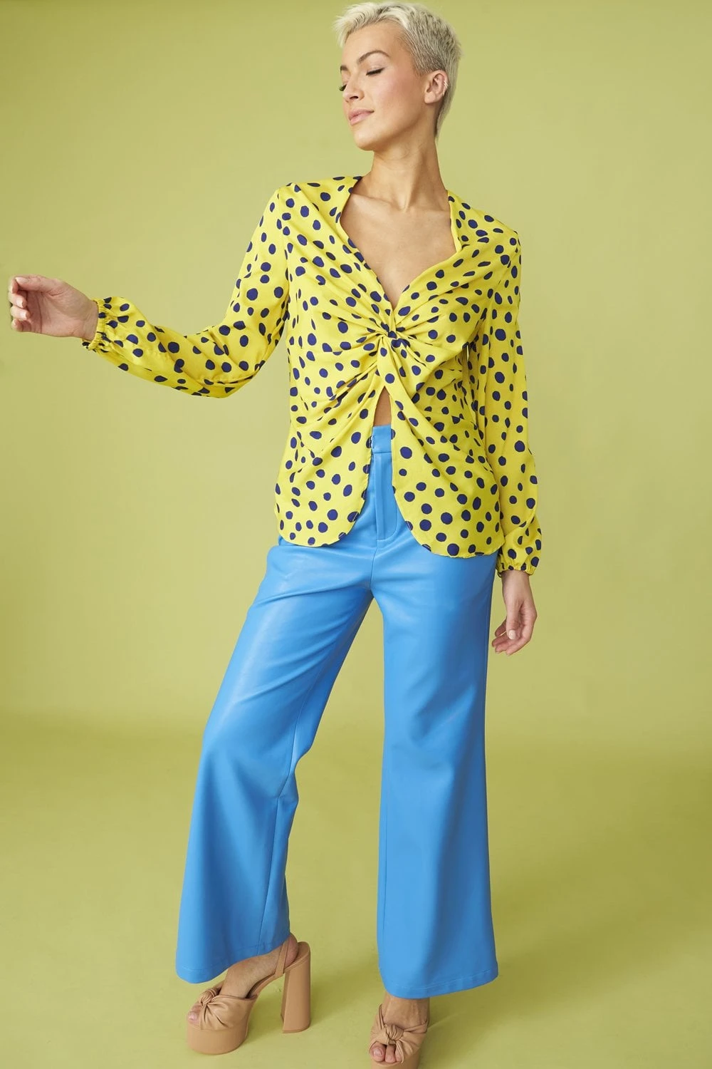 JAYLEY Rayon Polka Dot Ruffled Parma Blouse