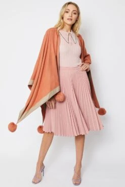 Easy to wear this delightful scarf is both practical and stunningly stylish. With its feature pom pom finishing this item is wonderful over an occasion dress or silk top to keep you warm and stylish.
