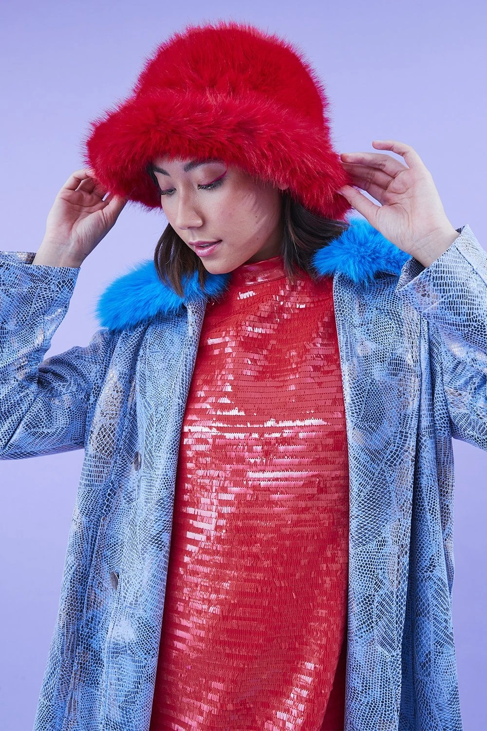 Get ready to make a statement in this unreal hat. Features a pure white faux fur bucket hat, we’re obsessed. Just add to your outfit of the day for a look that will get you noticed. Available in many colours!