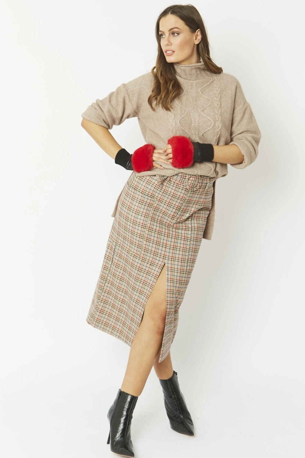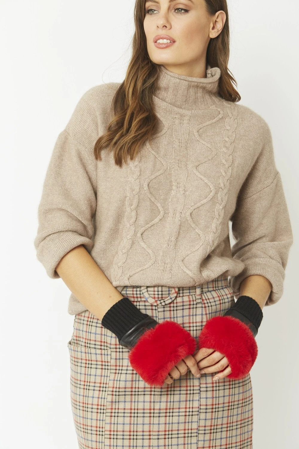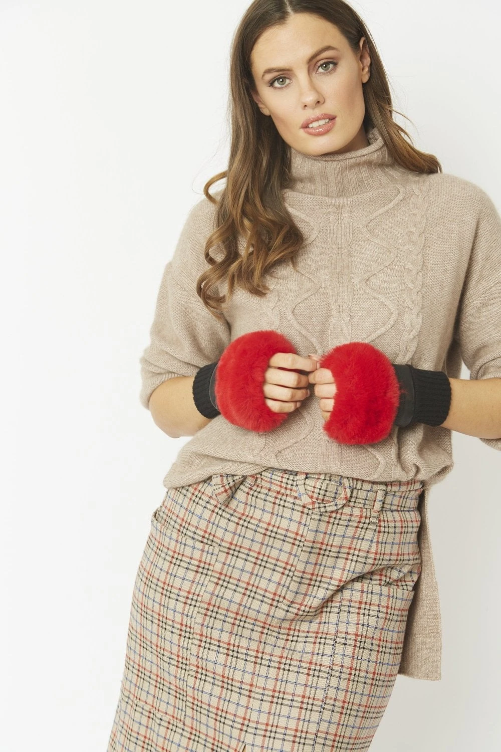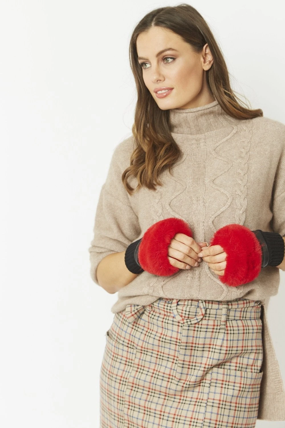 JAYLEY Red Faux Fur Fingerless Gloves