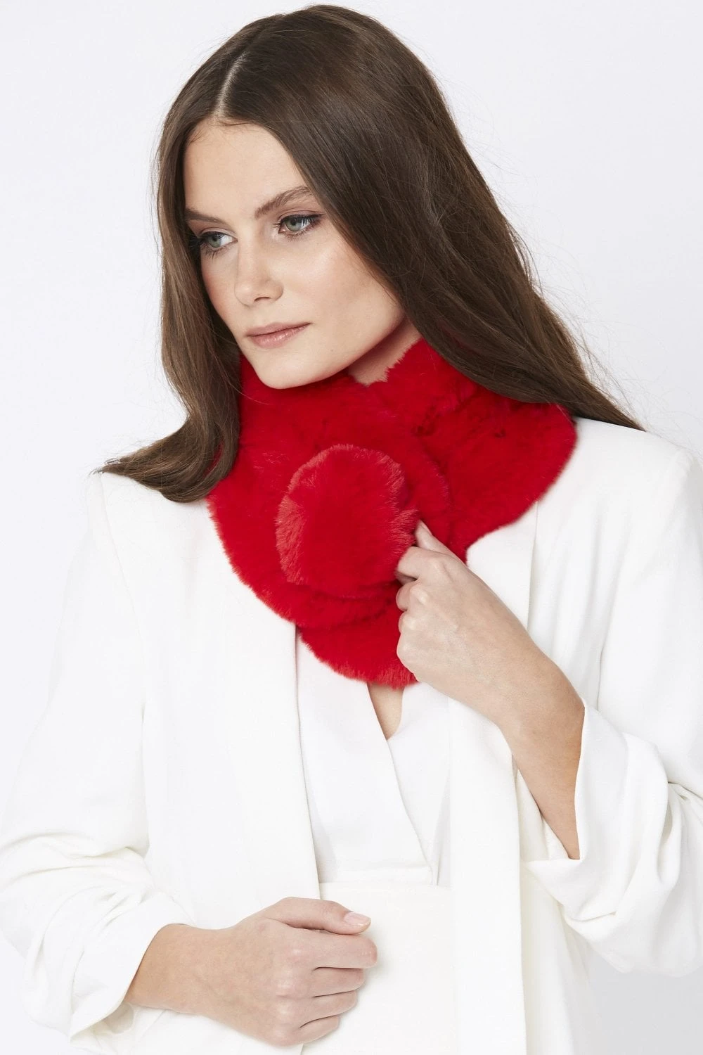 JAYLEY Red Faux Fur Scarf