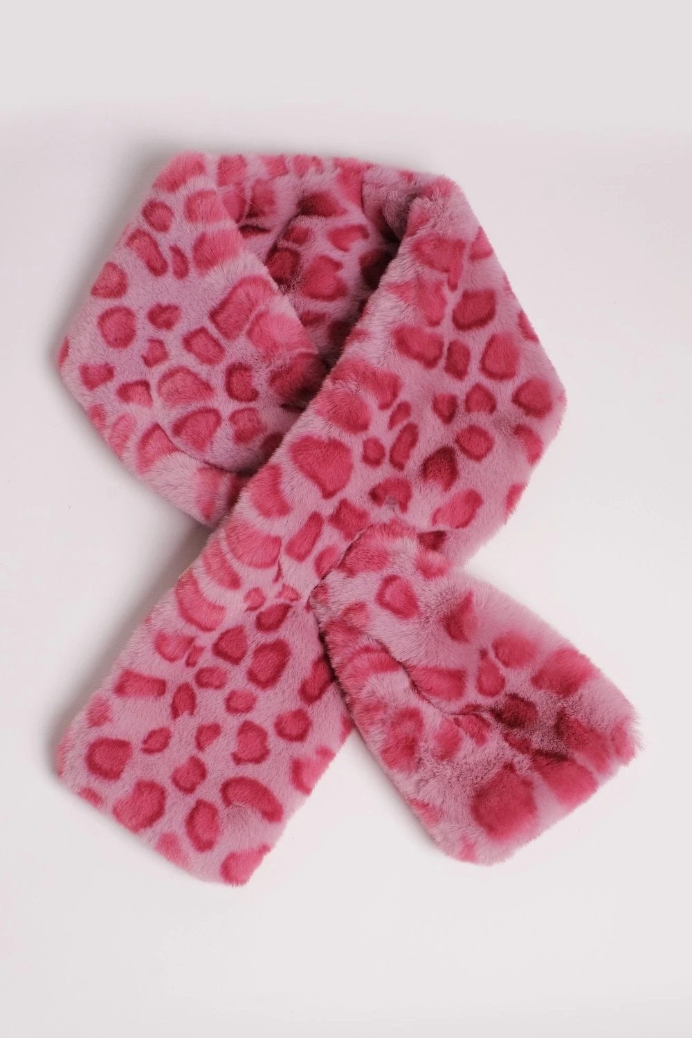 JAYLEY Red Leopard Print Faux Fur Scarf