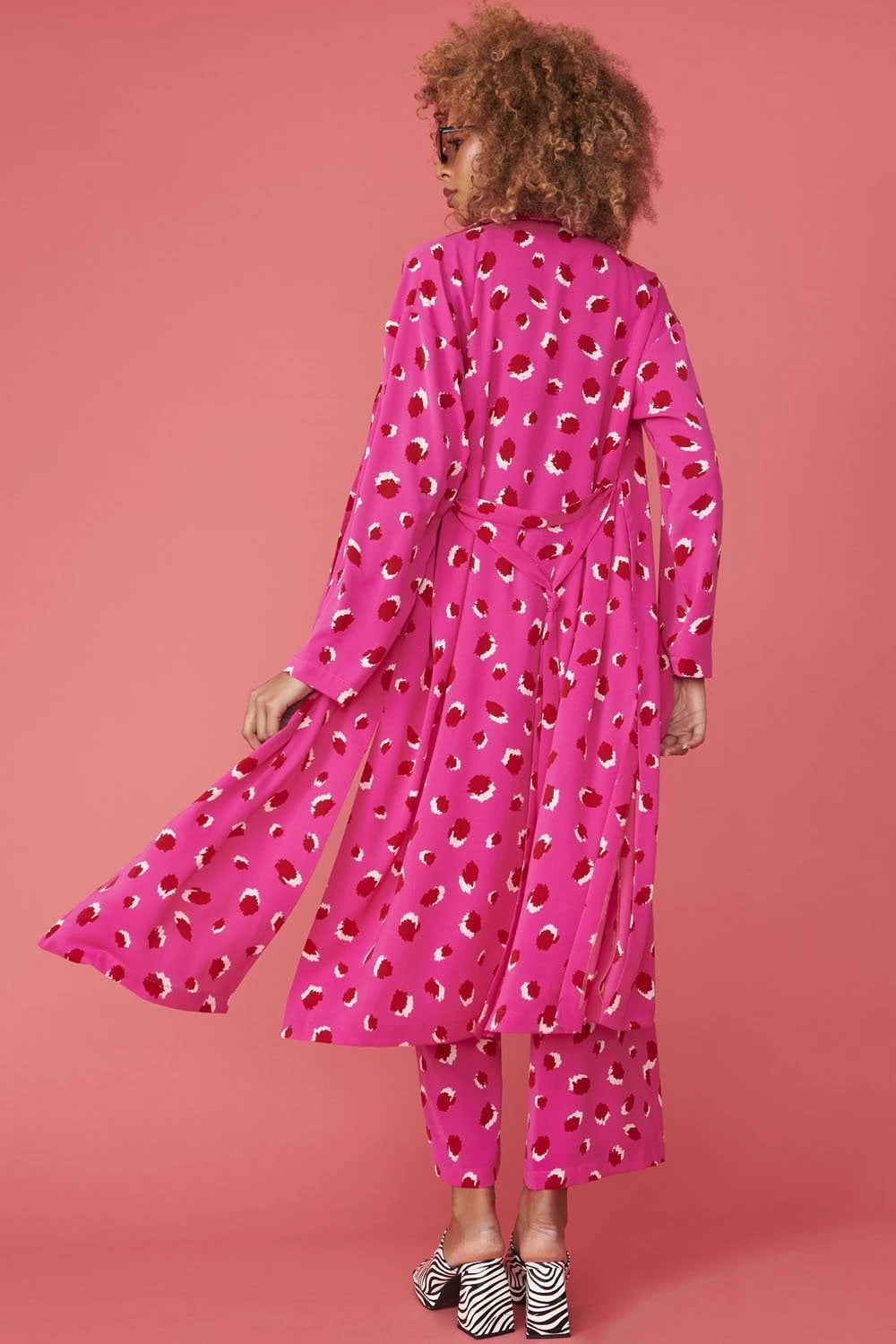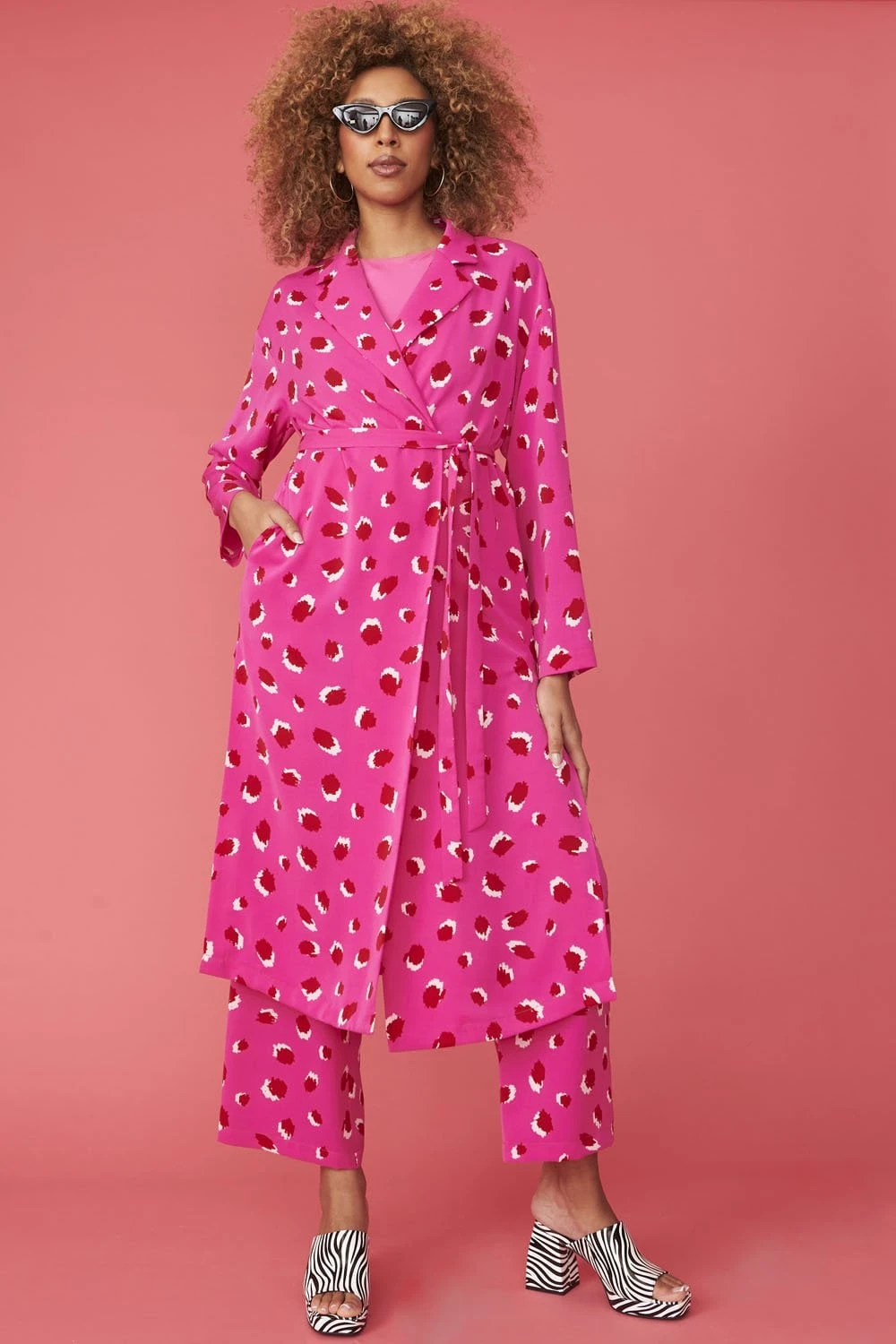 This silk blend animal print dress is just what you need for this season. This dress features 3/4 length sleeves, Lace-up neckline, and ruffle hem.