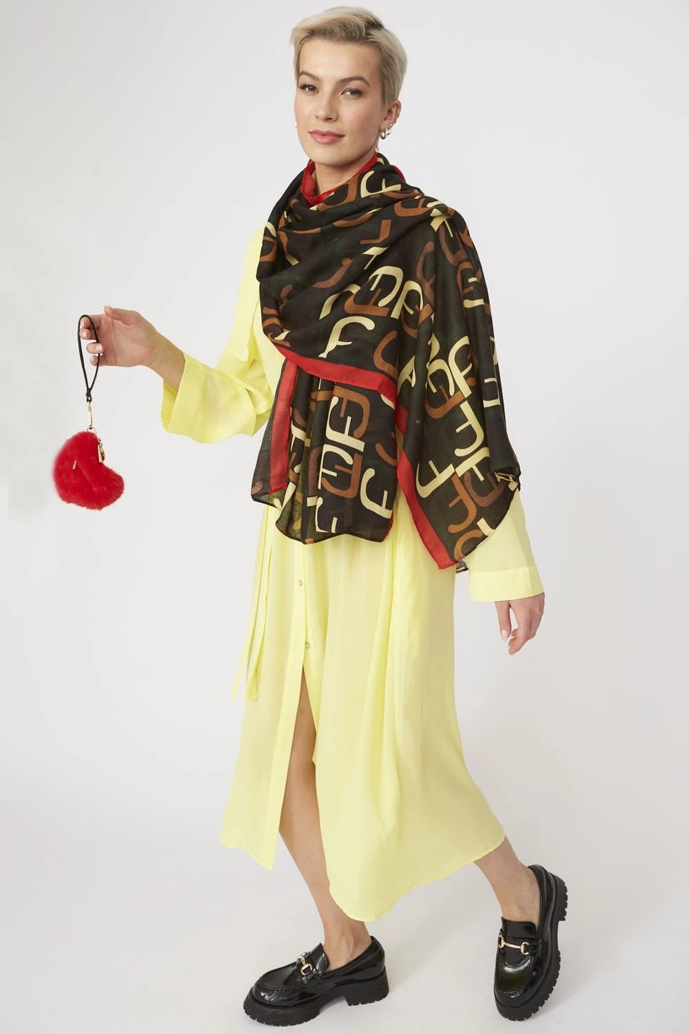 Our abstract print scarf is perfect for creating dramatic layers and keeping warm. Made from the finest of cashmere blend this scarf is sure to keep you warm without adding additional weight to your look.