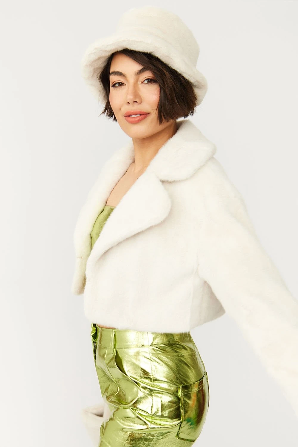 Get ready to make a statement in this unreal hat. Features a pure white faux fur bucket hat, we’re obsessed. Just add to your outfit of the day for a look that will get you noticed. Available in many colours!