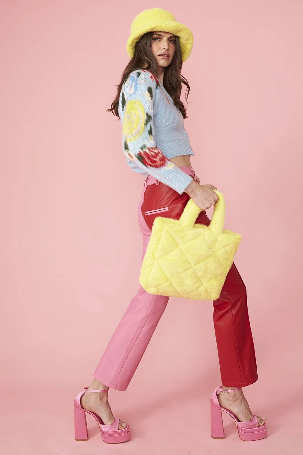 JAYLEY Yellow Faux Fur Diamond Stitch Tote Bag