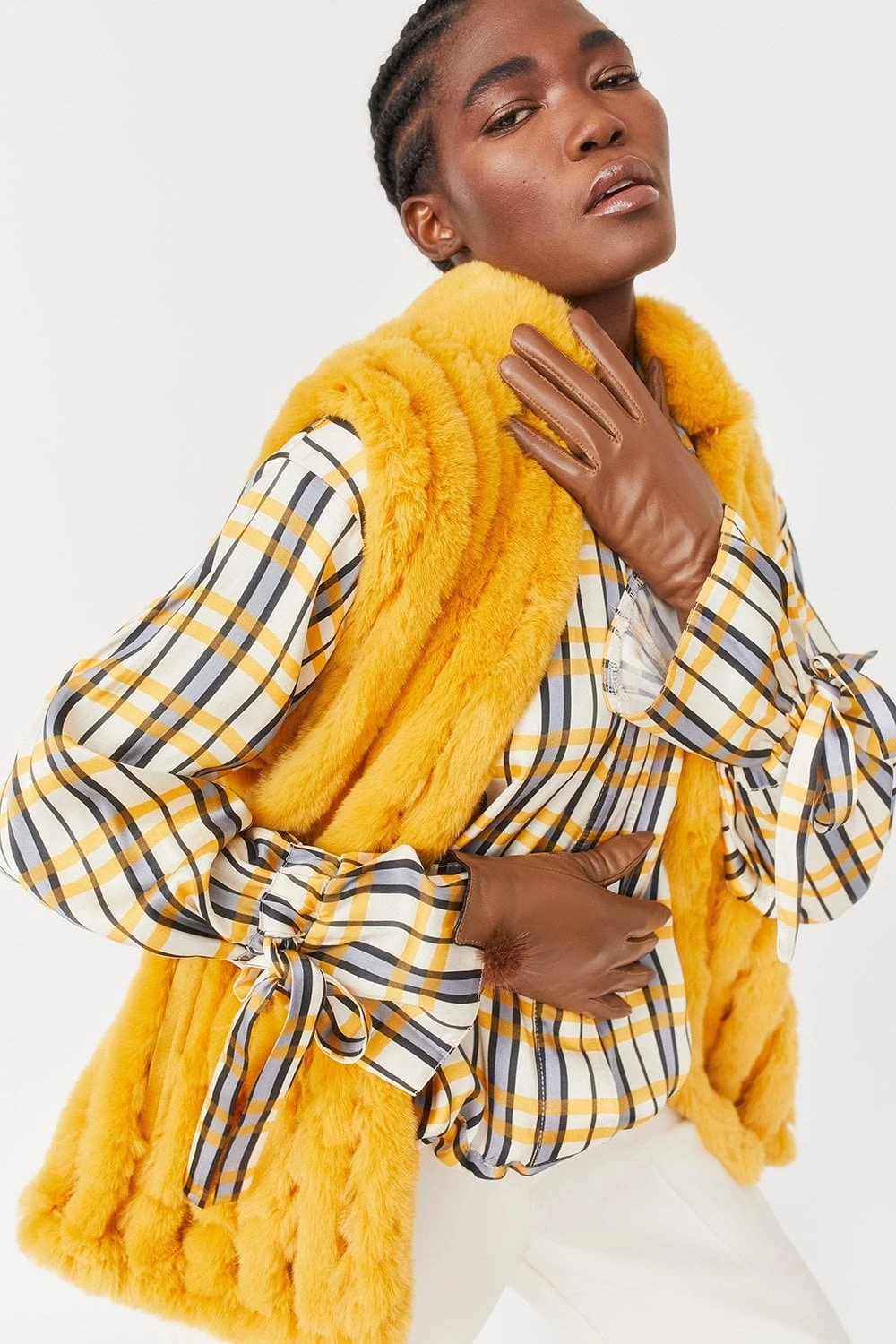 JAYLEY Yellow Faux Fur Gilet
